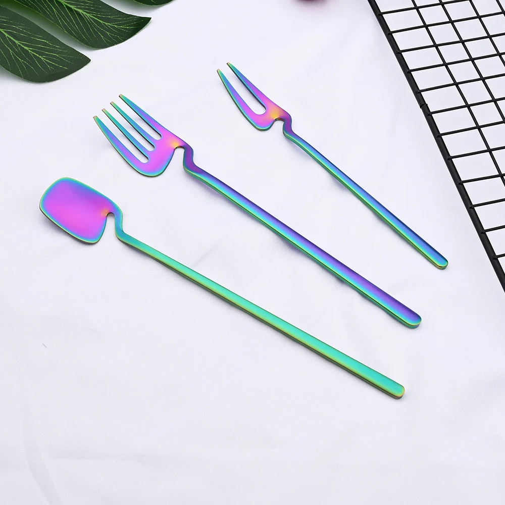 Ложка для кофе, чая, 6 шт., радужные цвета, с длинной ручкой, для мороженого, десертов, Экологически Чистая нержавеющая сталь 304, посуда, кухонная