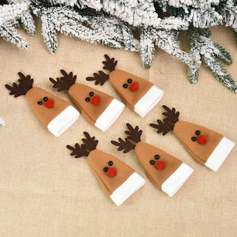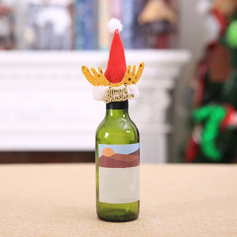 Крышка для бутылки вина, шампанского, рождественские декоративные шапки, украшения для стола для домашней вечеринки, Рождественский Санта и олень