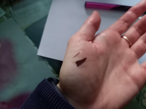 Розовый тюбик - коричневый лайнер. Натурально выглядит. Надеюсь не засохнет быстро. Шло долго