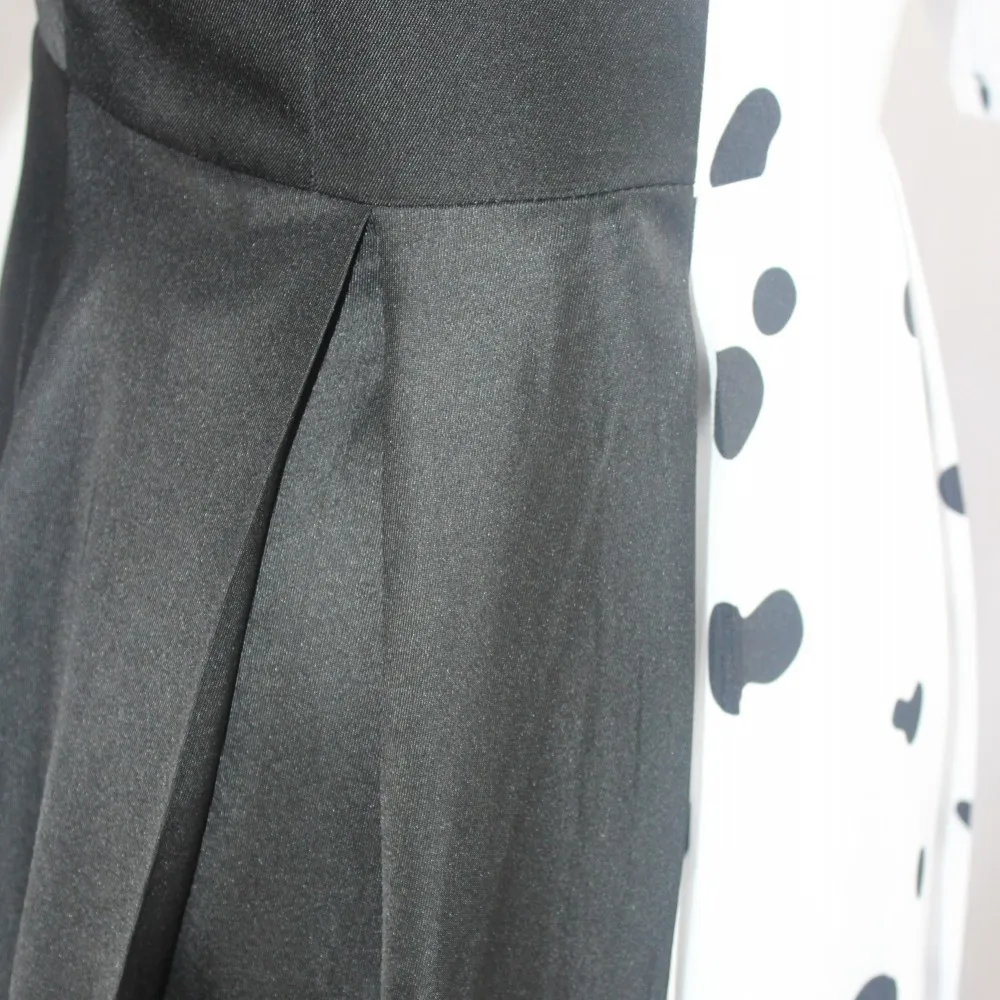 Костюм для косплея Cruella De Vil из фильма 101 далматинцев, женское платье для девочек, модная одежда черного и белого цвета с париком для хэллоуивечерние