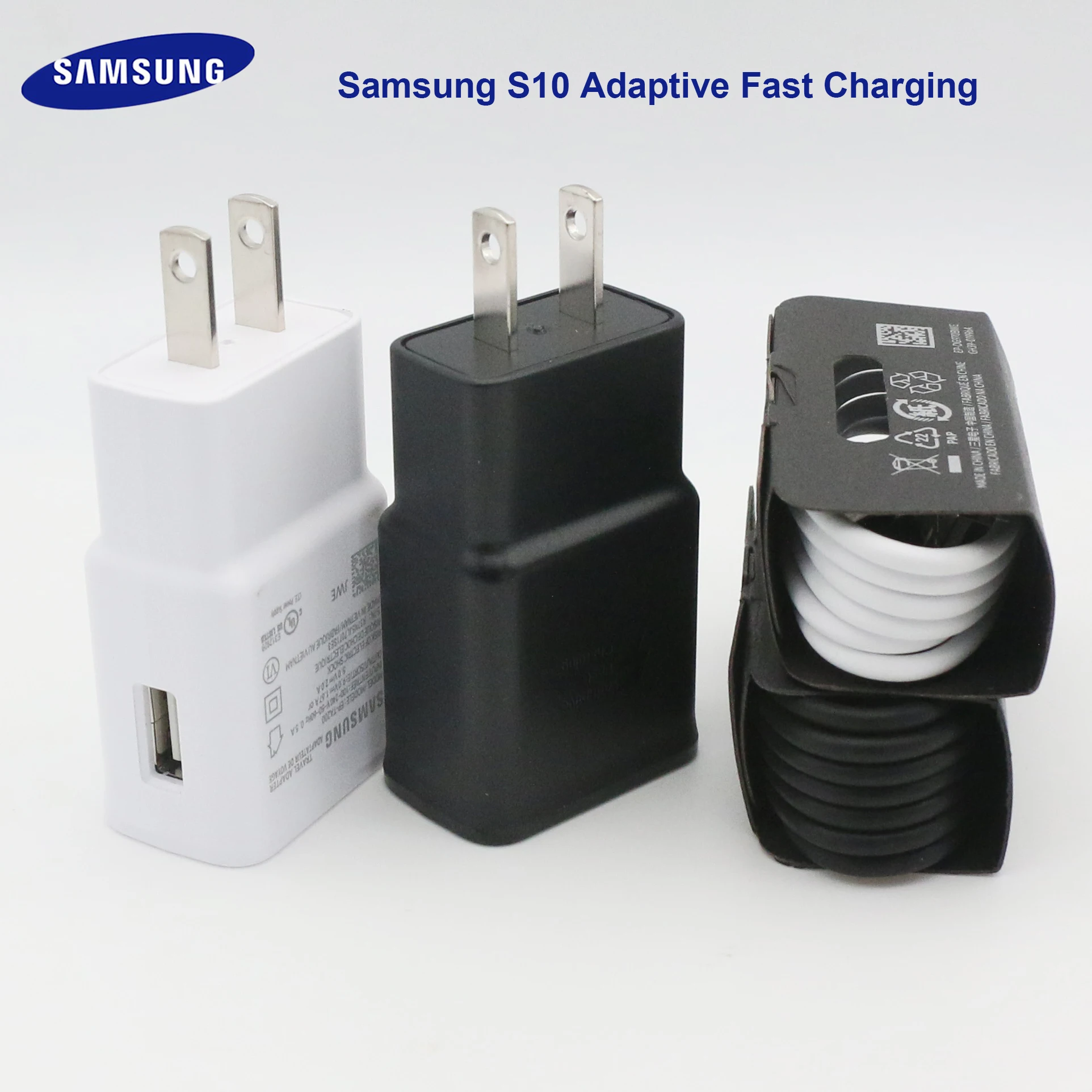 Оригинальное быстрое зарядное устройство Samsung S10 с европейской и американской вилкой, USB-адаптер, кабель Type-C для Galaxy S8, S9 Plus, Note 8, 9, A3, A5, A7