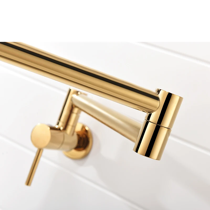 Настенный Складной кухонный кран, наполнитель для кастрюль, одно холодное отверстие, поворотный складной носик, хромированная, золотая, латунь