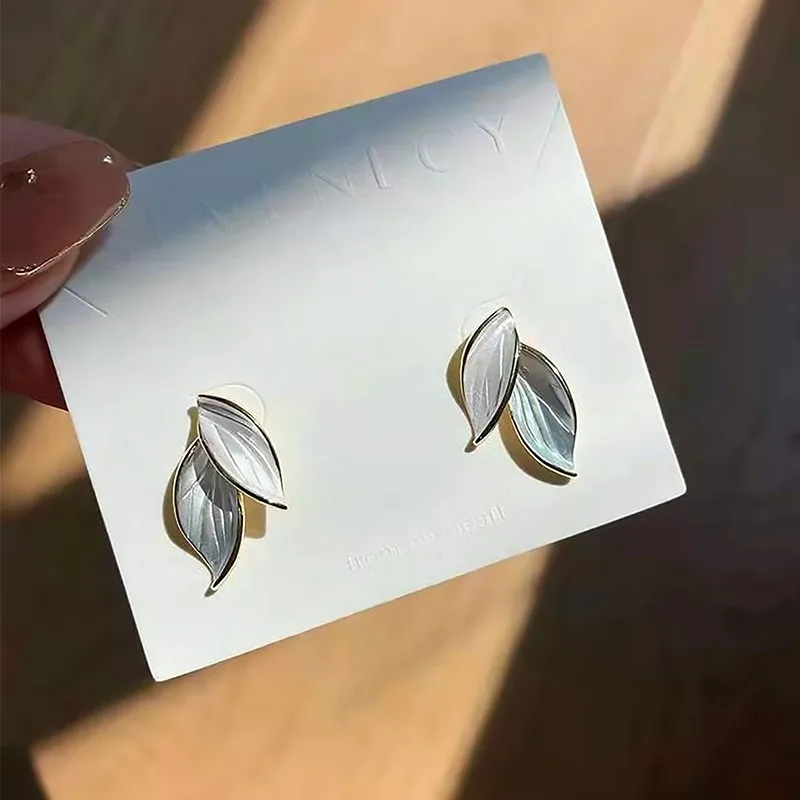 Женские серьги-гвоздики в виде листьев, серые серьги-гвоздики с лис...