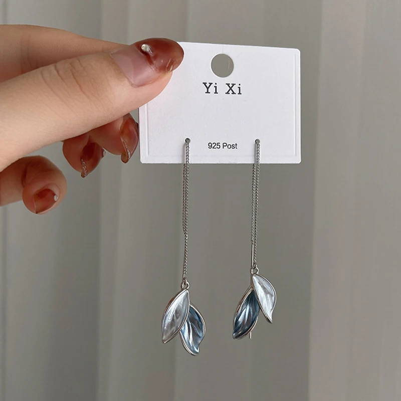 Длинные висячие серьги с листьями для женщин, элегантные висячие ук...