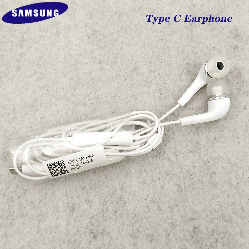Наушники-вкладыши Samsung S21, S20, Note 10 Plus, A80, A90, Type C, проводные, с микрофоном и регулятором громкости
