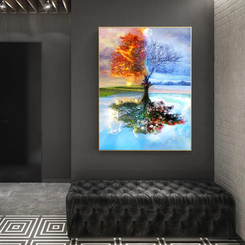 Абстрактный пейзаж, постер с деревом жизни, картина маслом на холсте, настенные художественные принты, настенные картины для гостиной, домашний Настенный декор
