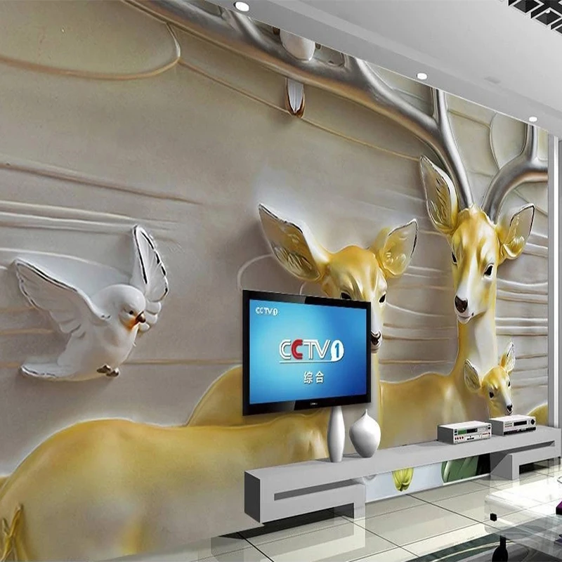 Пользовательские Настенные обои 3D рельеф олень декоративная живопись гостиная телевизор диван 3D фон настенная живопись Papel De Parede Sala
