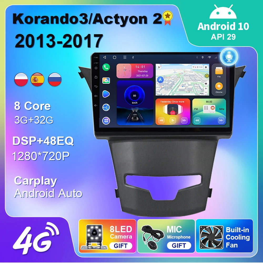 Автомагнитола 2 Din, для SsangYong Korando 3 Actyon 2 2013-2017, Android 10, GPS-навигация, 4G, Wi-Fi, USB, Android, автоплейер, DVD-плеер