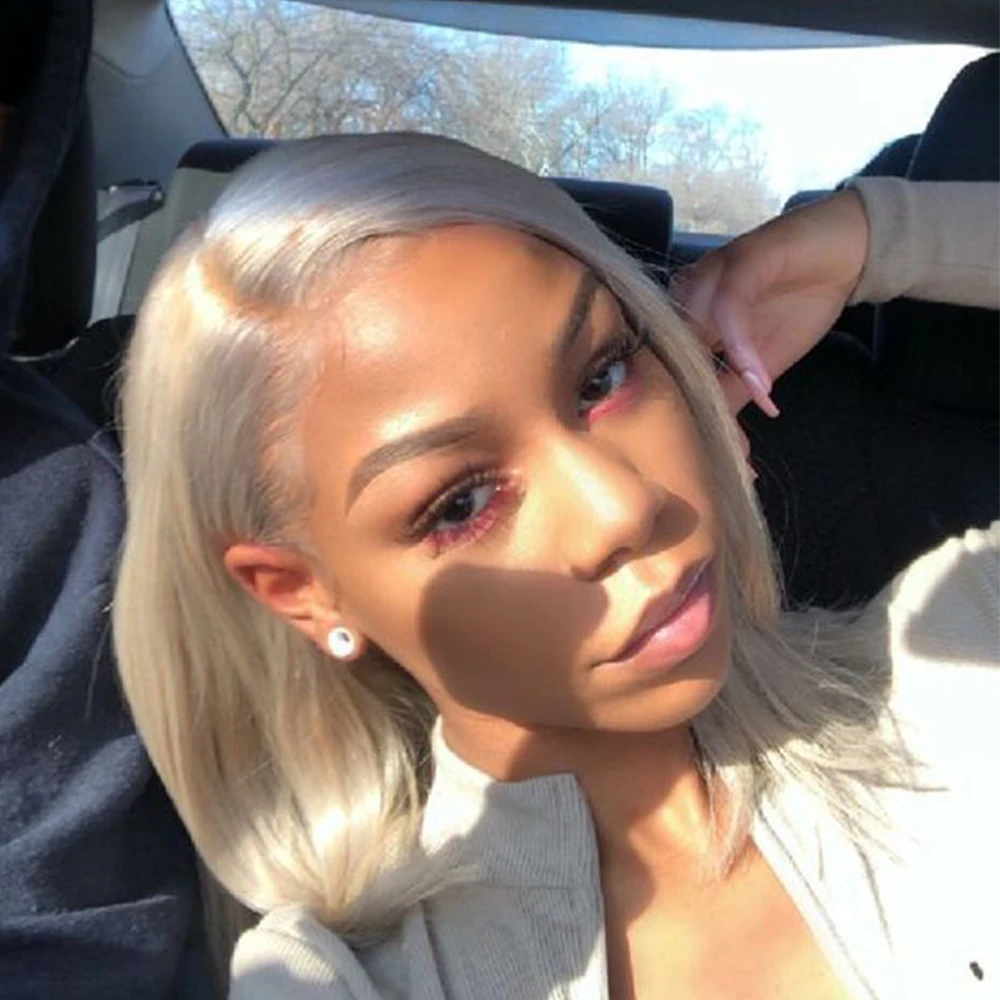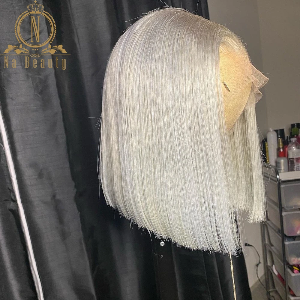 Парик из человеческих волос Омбре Grey Bob, прямой парик серебристого и серого цвета, парик на сетке спереди для женщин, парики на прозрачной сетке HD Nabeauty 180%