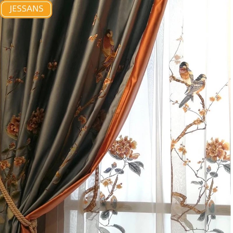 Шторы блэкаут с вышивкой в китайском стиле, шторы из газовой ткани ...