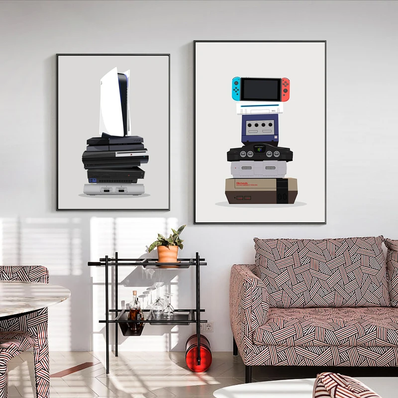 Игровой постер в стиле ретро, настенная Картина на холсте, движущаяся скорость, игровой плеер, ручка-контроллер, картина для мальчика, декор детской комнаты
