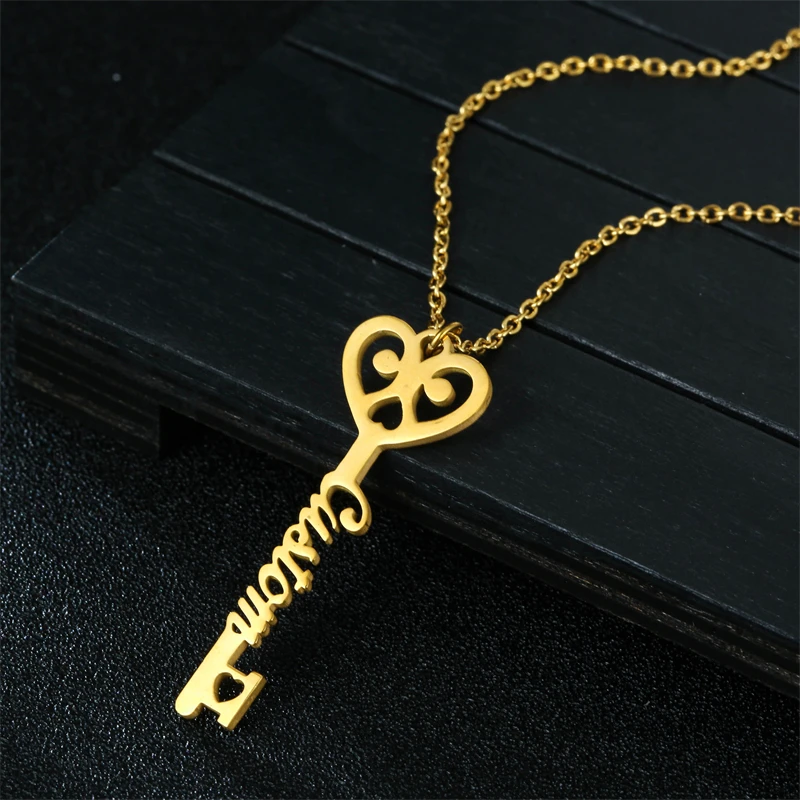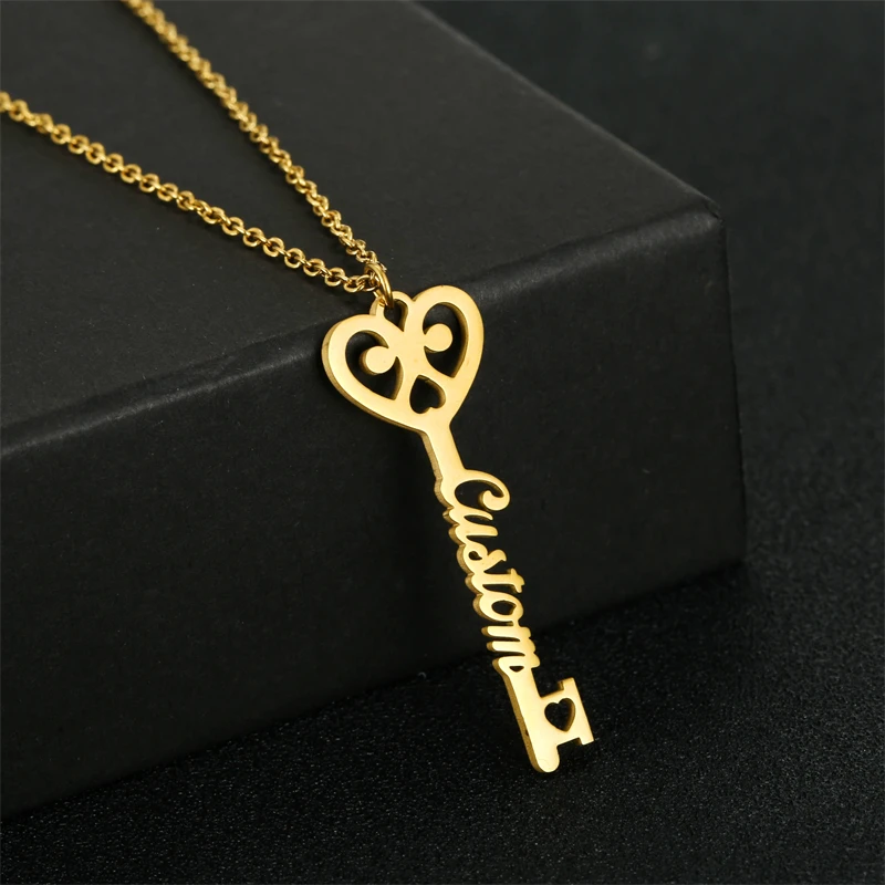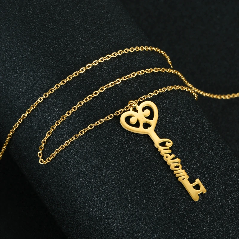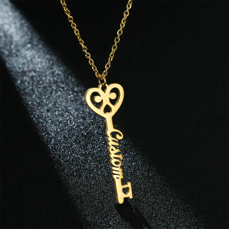 Позолоченный стальной ключ Styli из нержавеющей стали с именем под заказ ожерелье женский свадебный обручальный шейный воротник подарок на день Святого Валентина