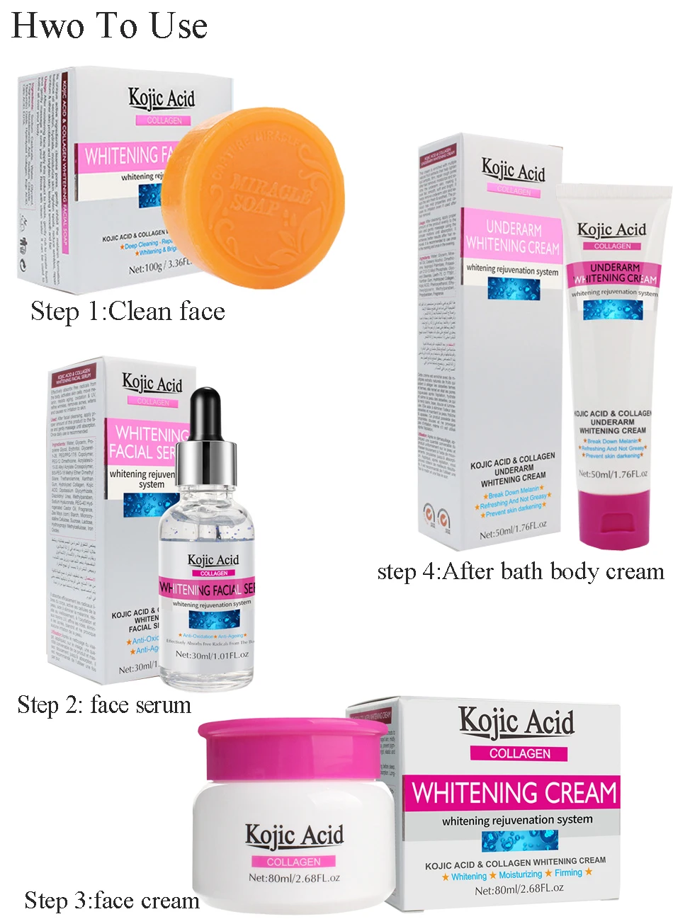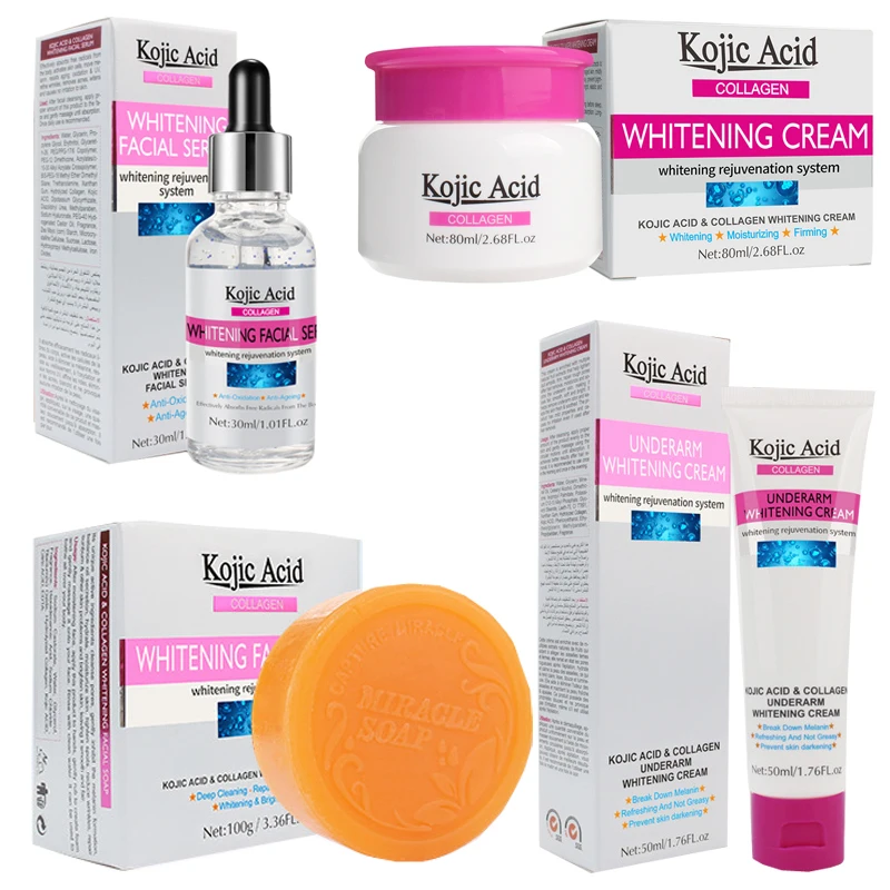Kojic Acid крем для лица + мыло для лица + Сыворотка для лица + отбеливающий Подмышечный крем для тела лифтинг против старения удаление морщин уход за кожей 3 шт.компл.