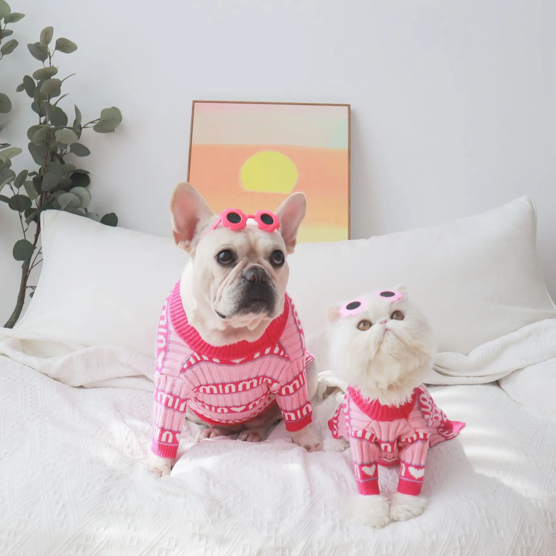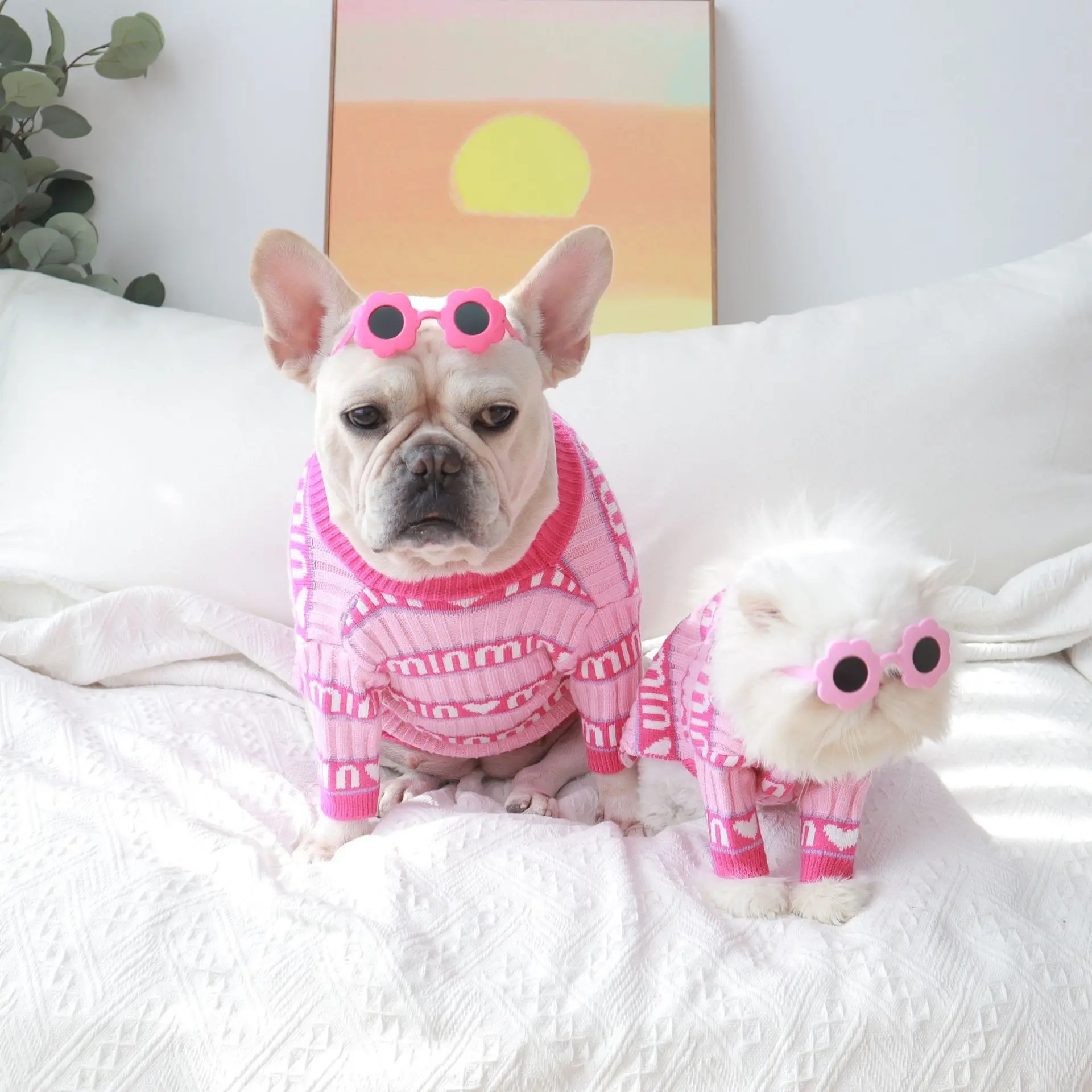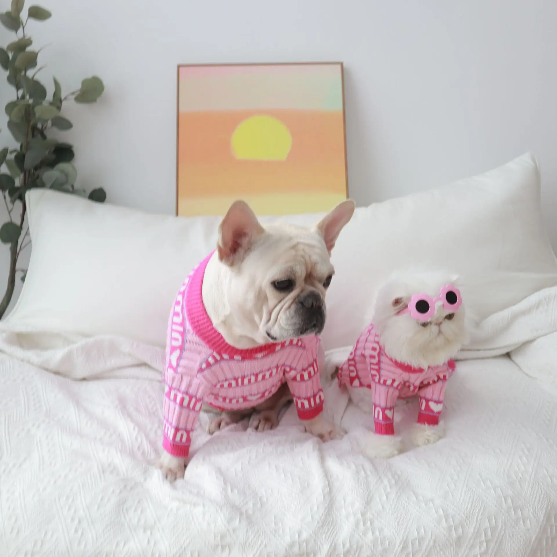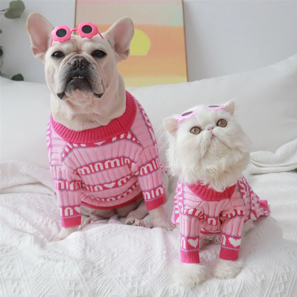 SUPREPET полосатый свитер для собак с буквенным принтом, розовый вязаный свитер для собак, зимняя теплая одежда для кошек, толстовка с капюшоном для французского бульдога, прямые продажи