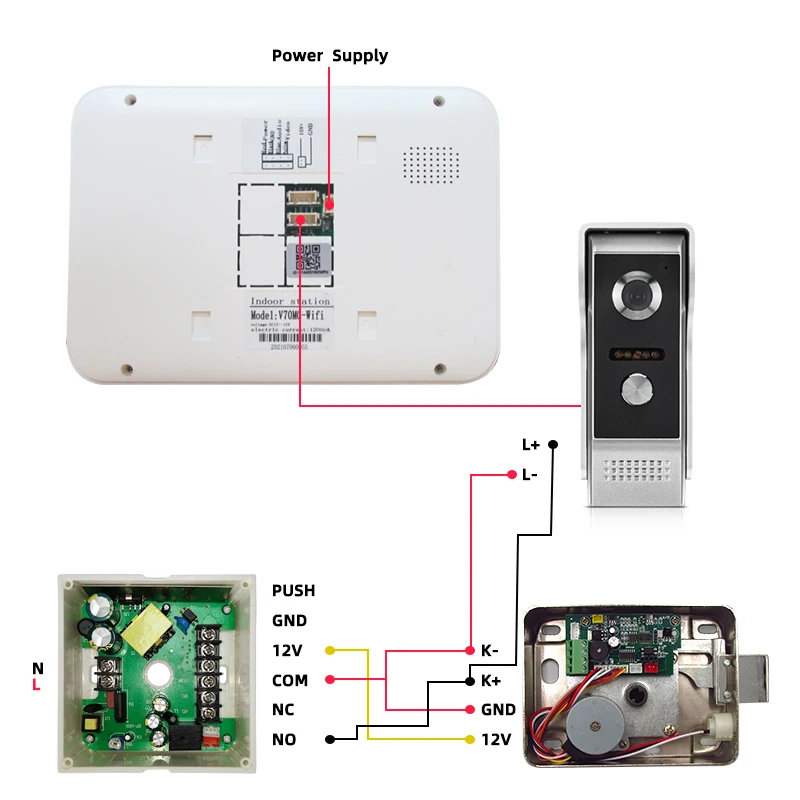 Наружный дверной звонок:1000TVL, ИК ночное видение, водонепроницаемый, угол обзора 90 градусовРазмер: 125*50*27 ммВнутренний монитор:7 дюймов, мониторинг, визуальный домофон, Удаленная разблокировка, поддержка макс. 32 Гб sd-картыРазмер: 230*165*22 мм