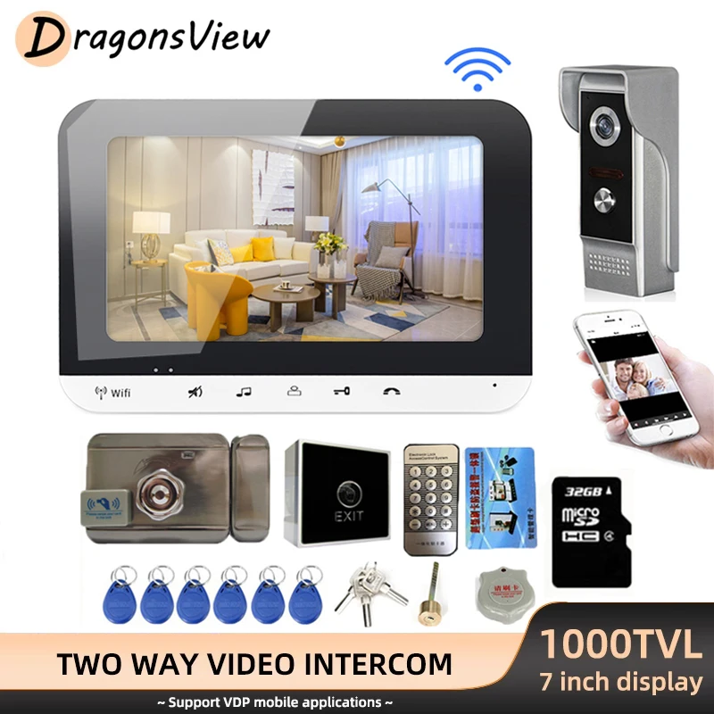 Видеодомофон DragonsView с Wi-Fi и электрическим замком, беспроводной дверной звонок 1000TVL с камерой, записью, удаленной разблокировкой IP65