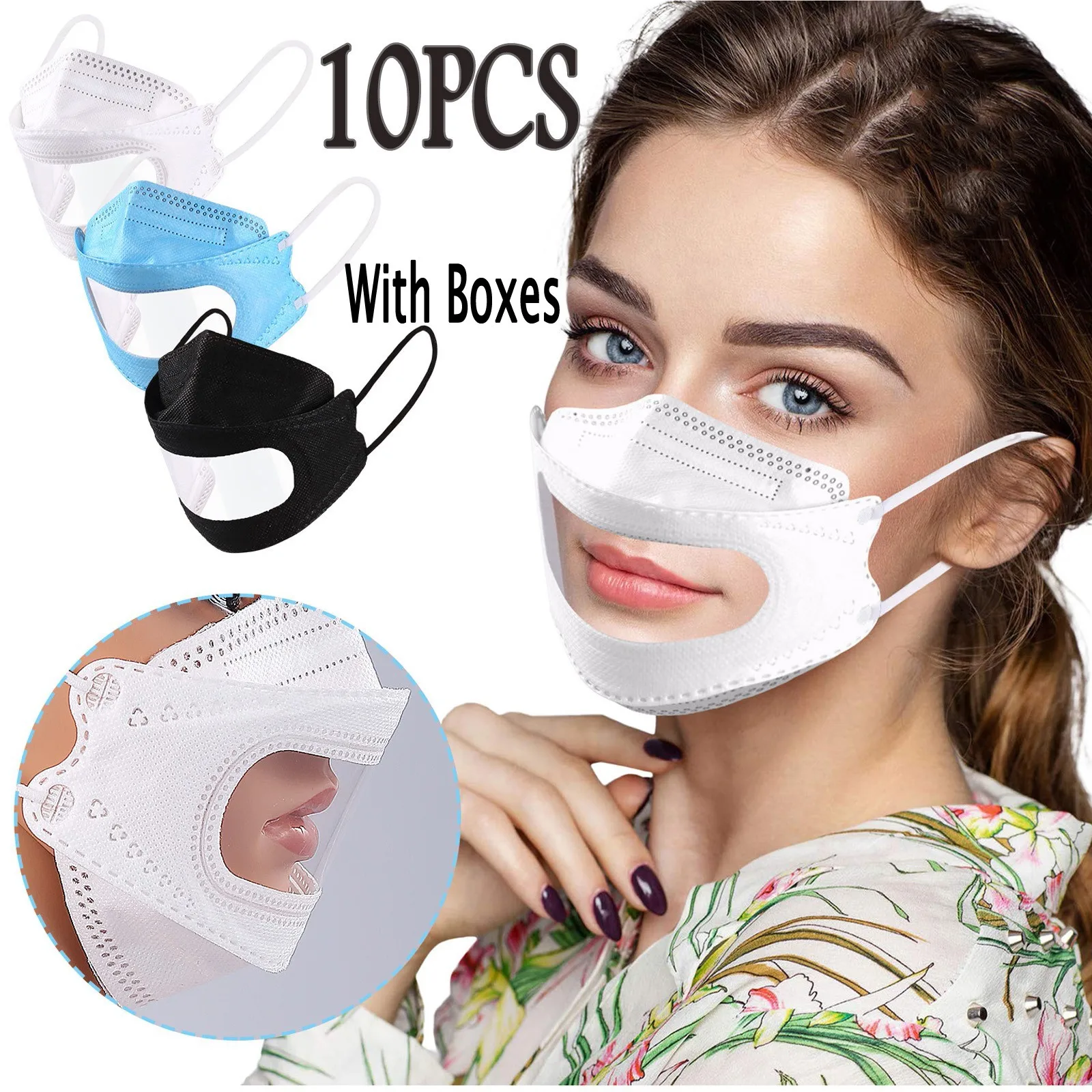 10 шт. с коробками для взрослых, прозрачные губы, одноразовая маска для лица, маска-Ушная петля
