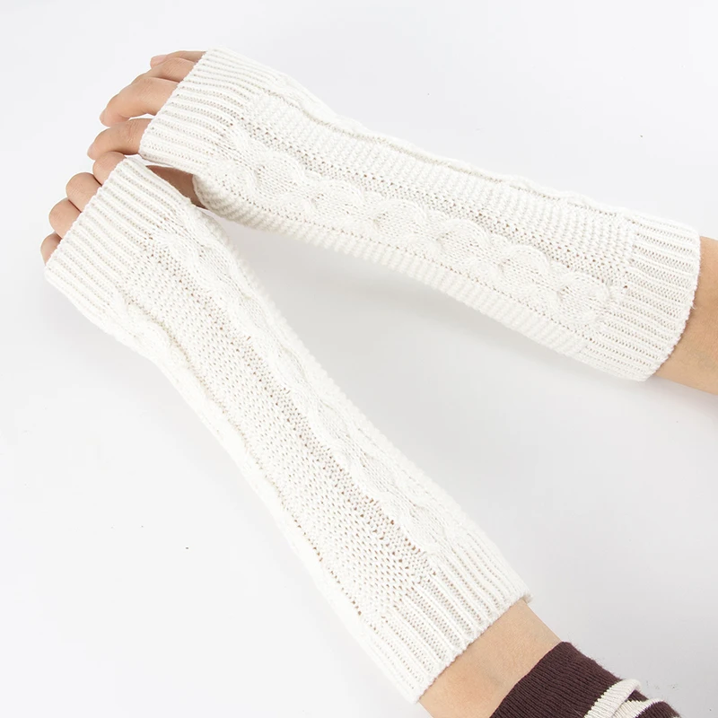 Женские вязаные перчатки на осень и зиму, сезон 2021, теплые длинные полузимние варежки для девушек с рукавом до запястья, черные и белые перчатки без пальцев