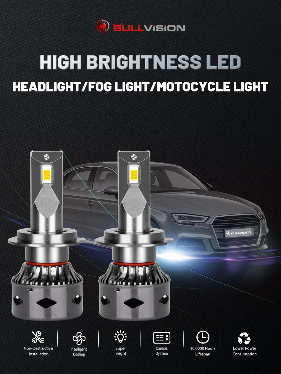 Светодиодная фара BULLVISION 9005 HB3 H7 H4 H11 H8 H9 9005 9006 HB3...