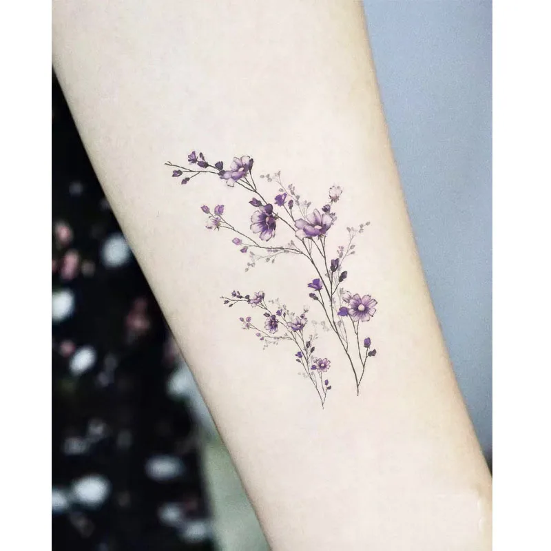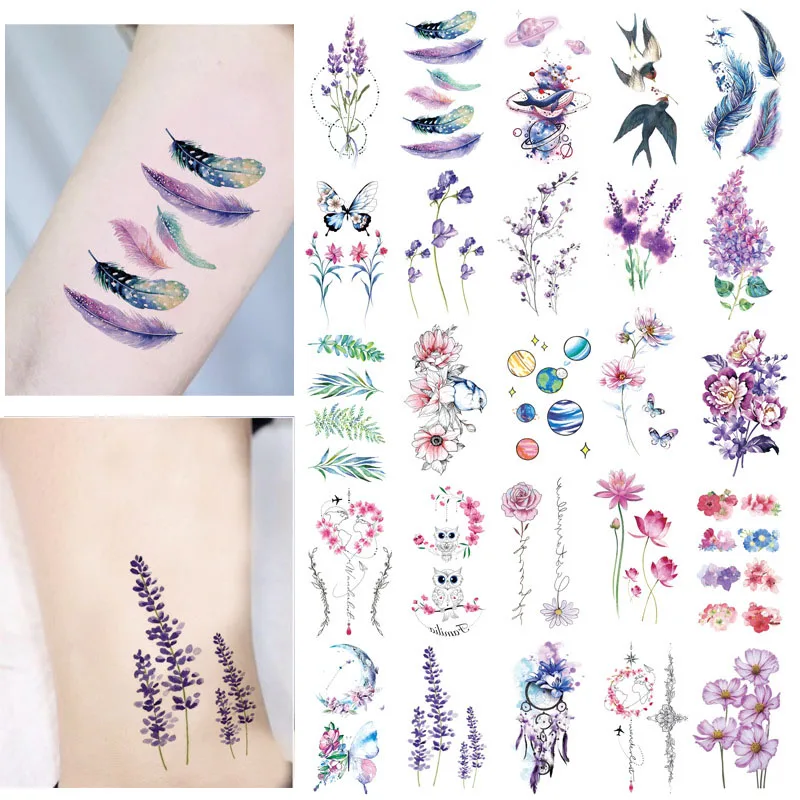 Наклейки с маленькими татуировками, флора, лаванда, флэш-имитация, водонепроницаемые милые временные женские татуировки на руку, грудь, Временные татуировки, боди-арт