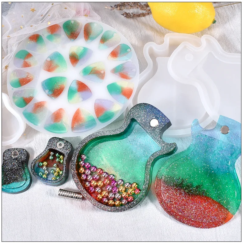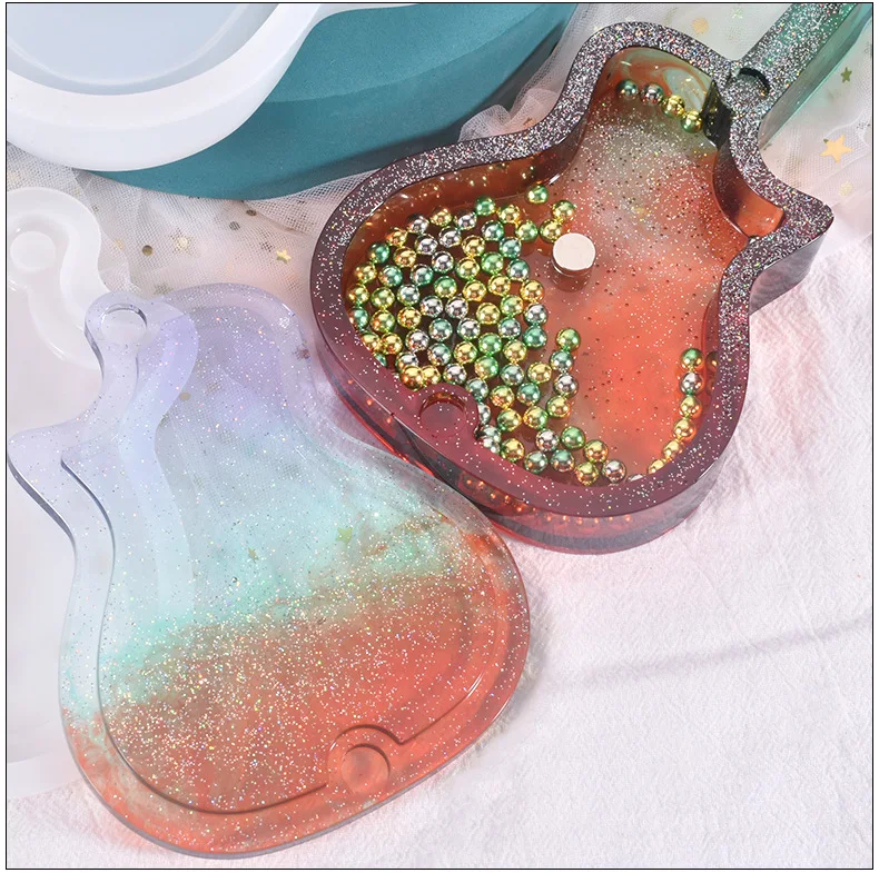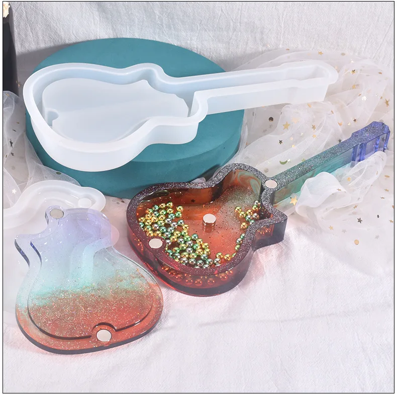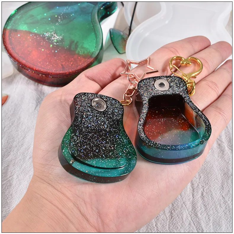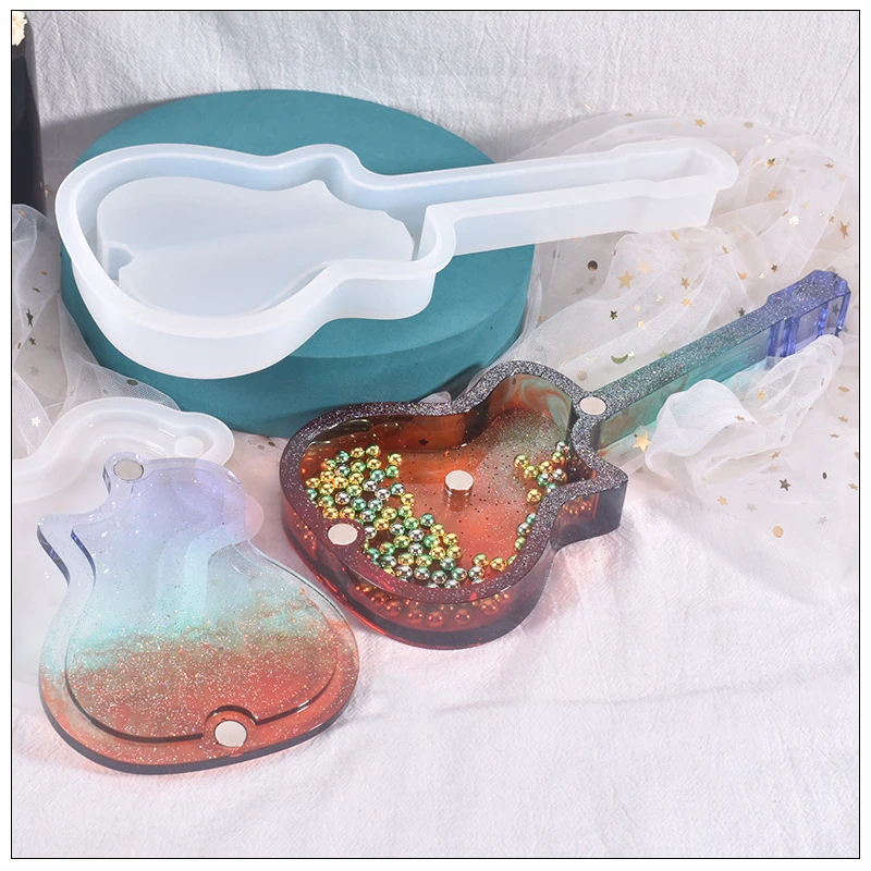 Полимерная форма сделай сам для гитары, блестящие формы для гитары, косметическая пуховая коробка, косметический Чехол, зеркало, силиконовые формы