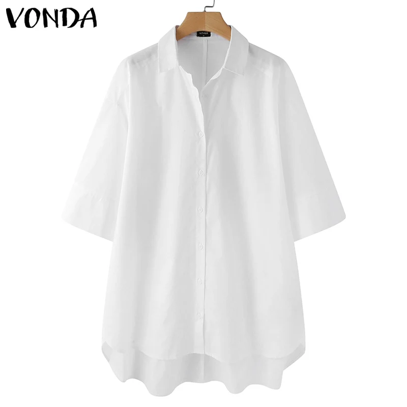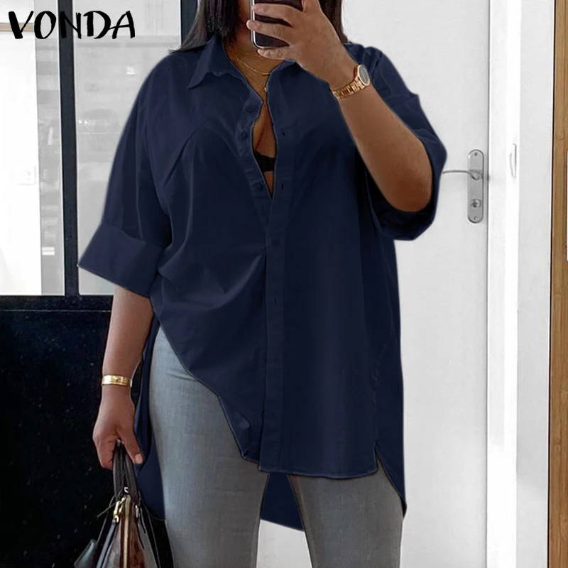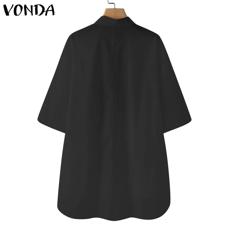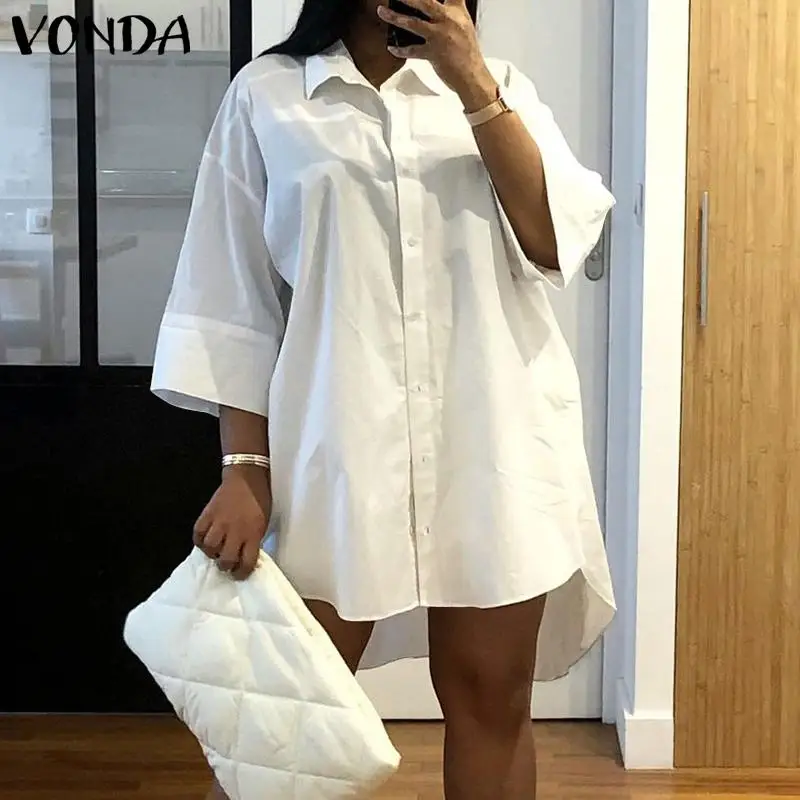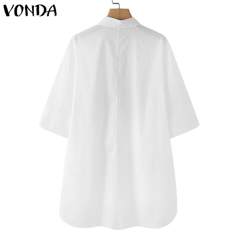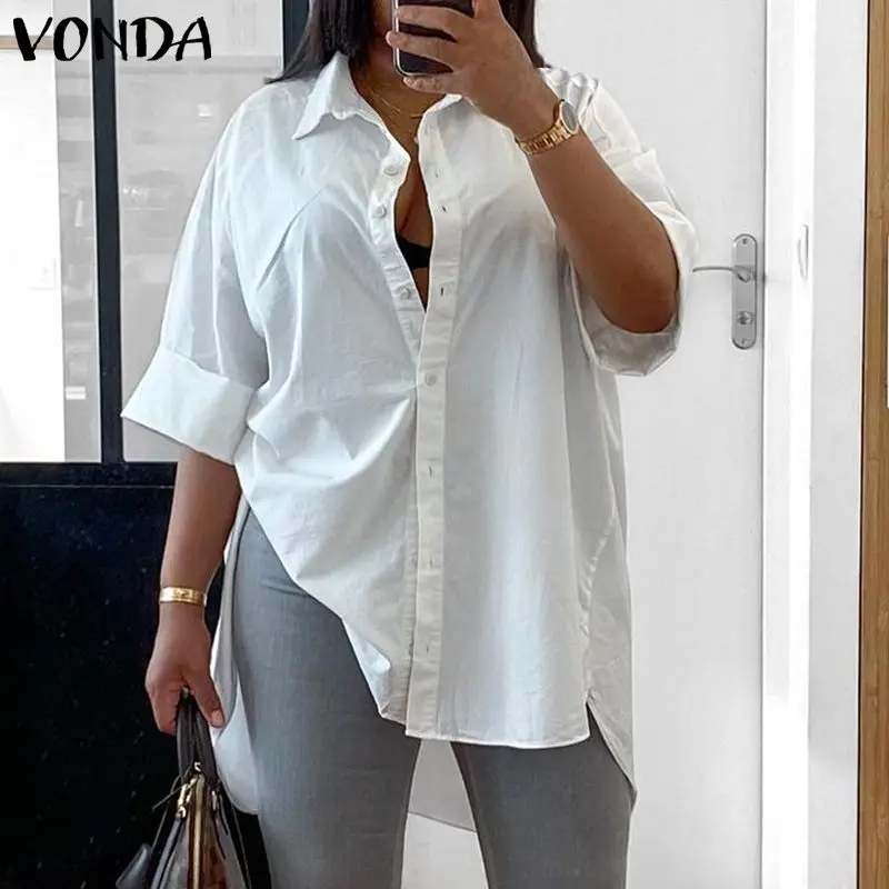 Женские белые рубашки VONDA, осень 2022, Повседневная Блузка с рукавом 34, отложным воротником и пуговицами, модная вечерняя туника на пуговицах, топы, женские блузы