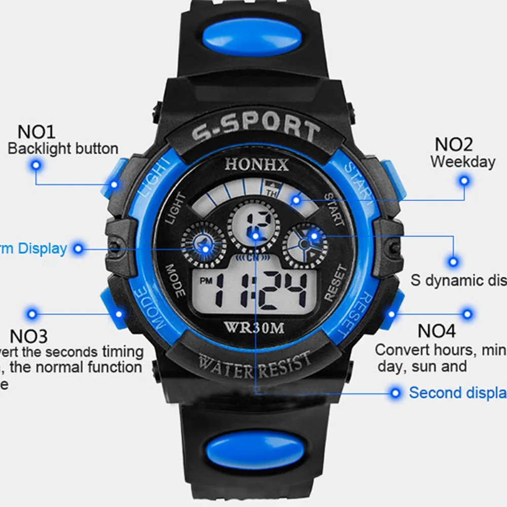 Часы Детские с будильником и датой, водонепроницаемые светодиодные цифровые спортивные, с силиконовым акриловым ремешком, повседневный подарок для мальчиков и девочек