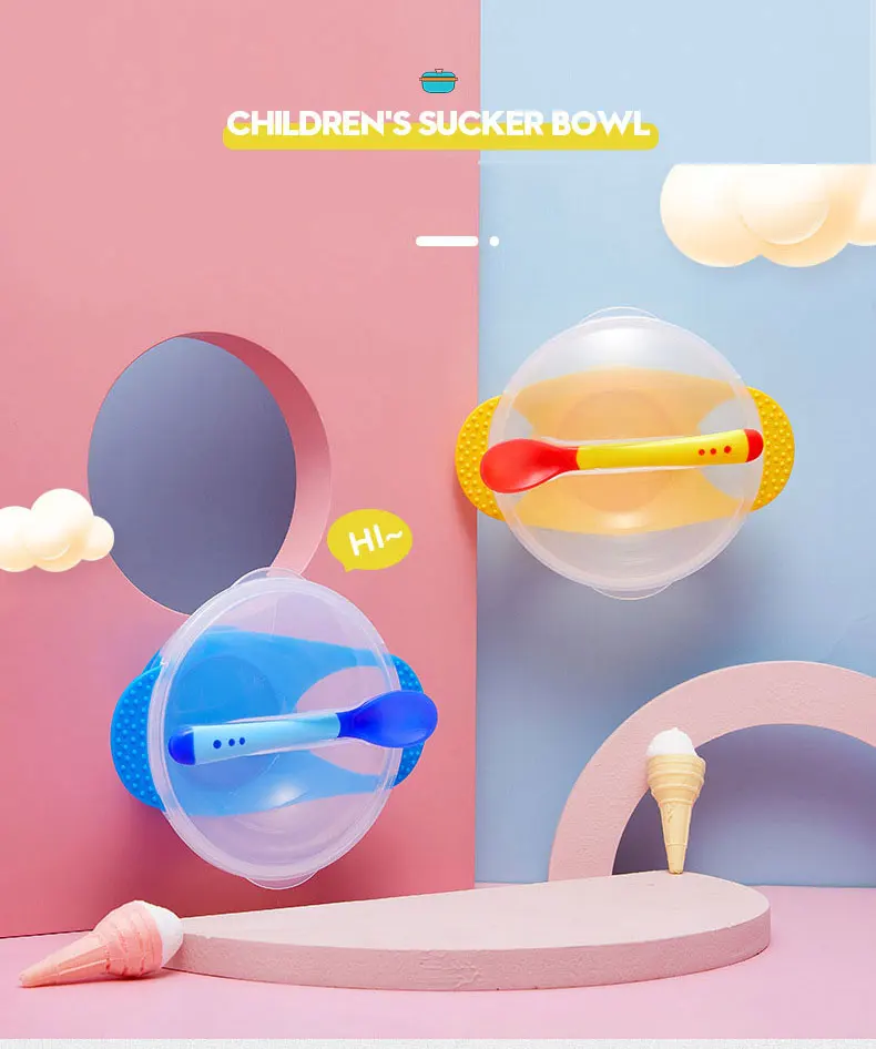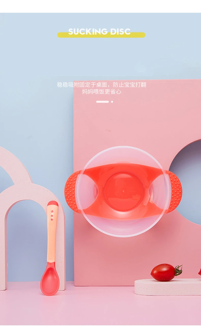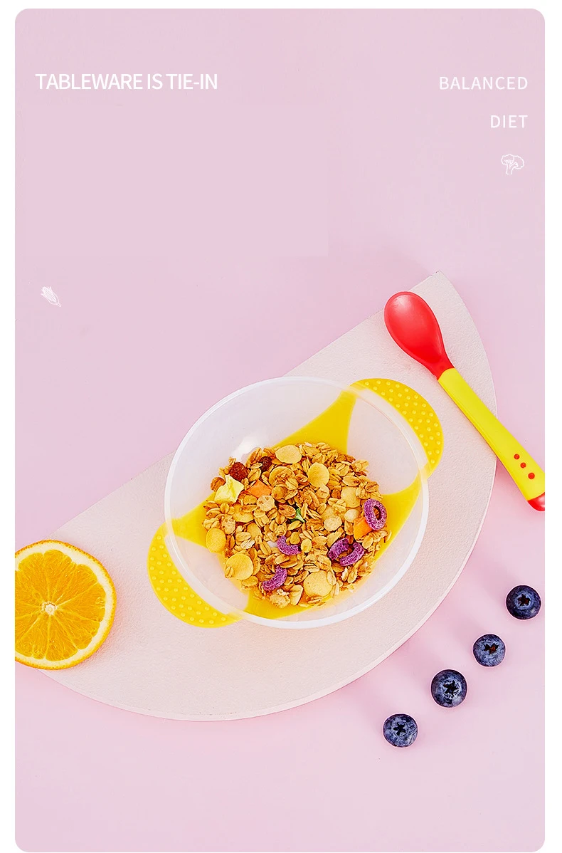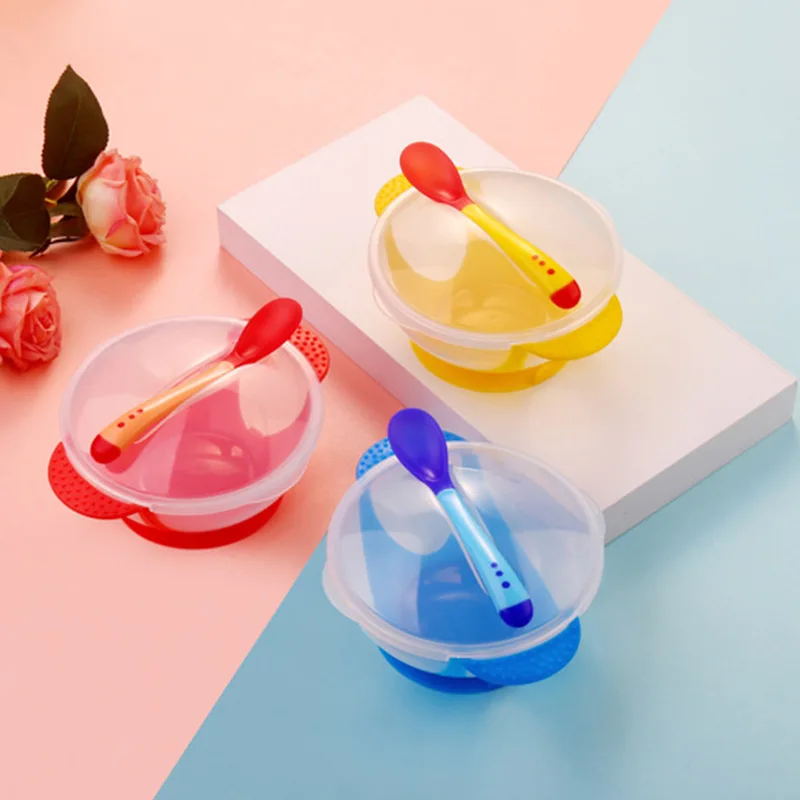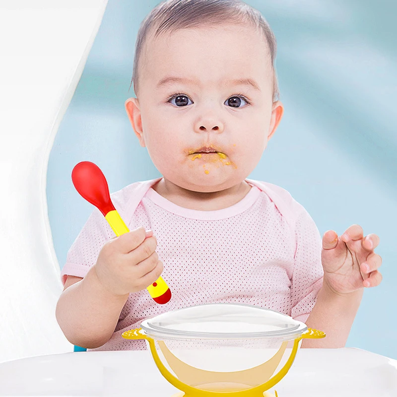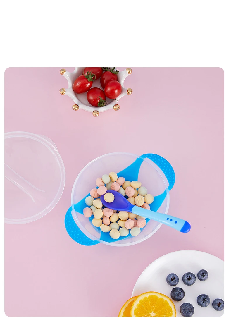 Детская миска на присоске с ложкой, детская посуда с датчиком температуры, кормушка для кормления, безопасная детская посуда для обучения