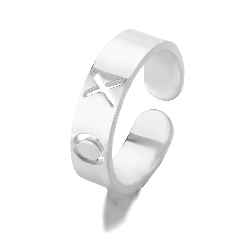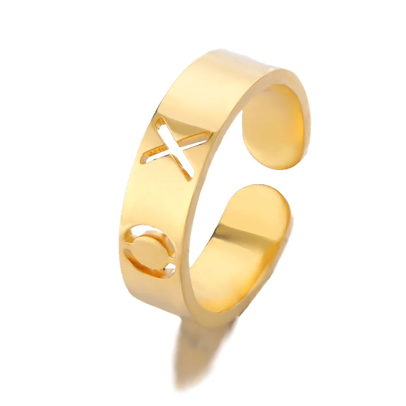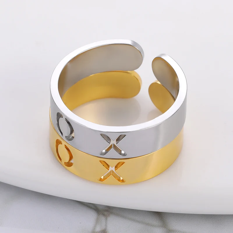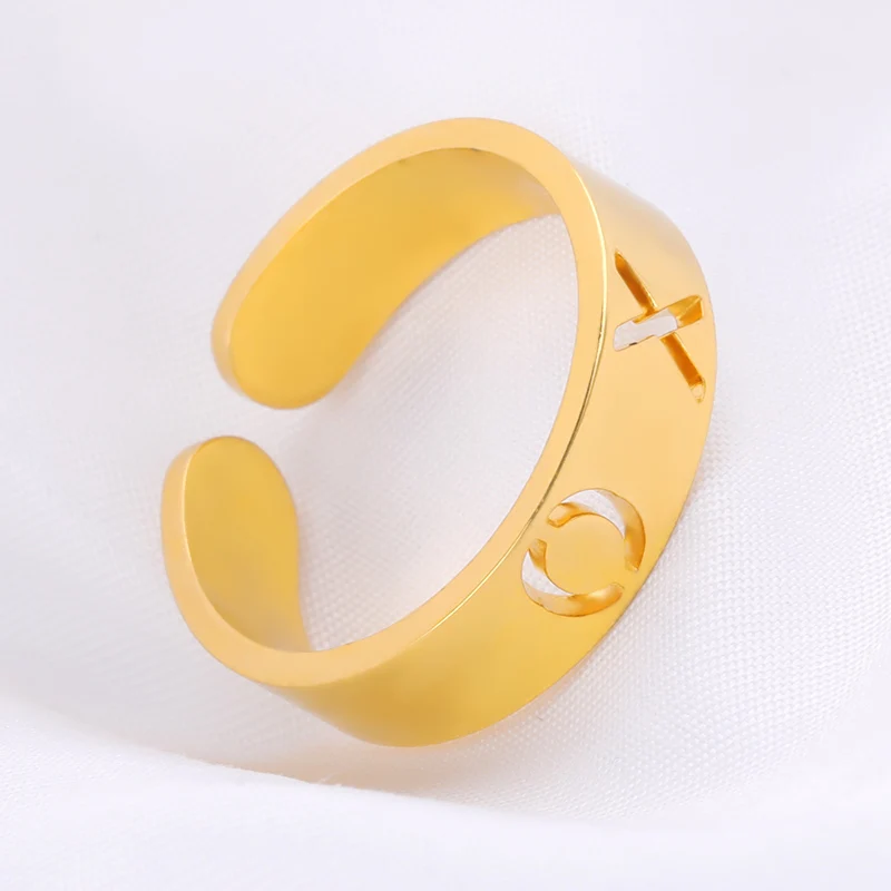 Открытое регулируемое кольцо из нержавеющей стали с полыми буквами