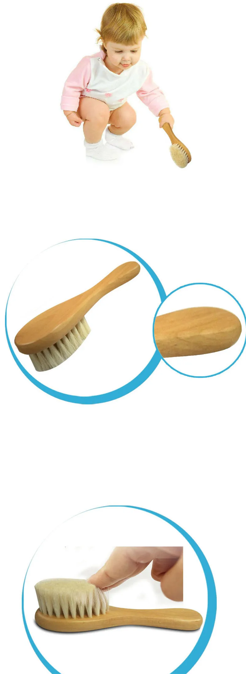 Детская шерстяная щетка, щетка для волос для новорожденных, деревян...