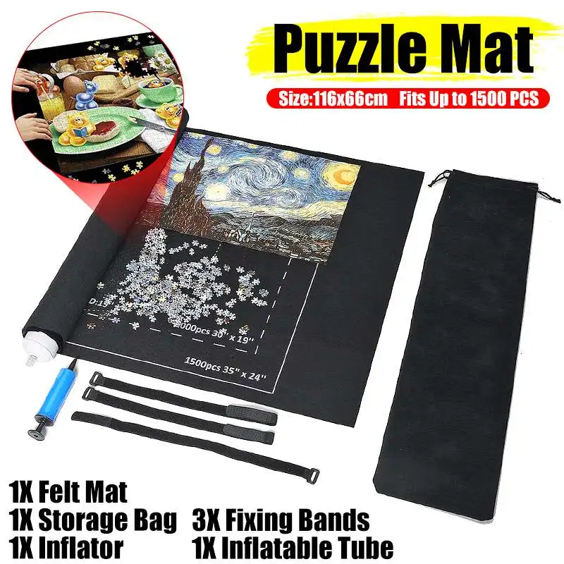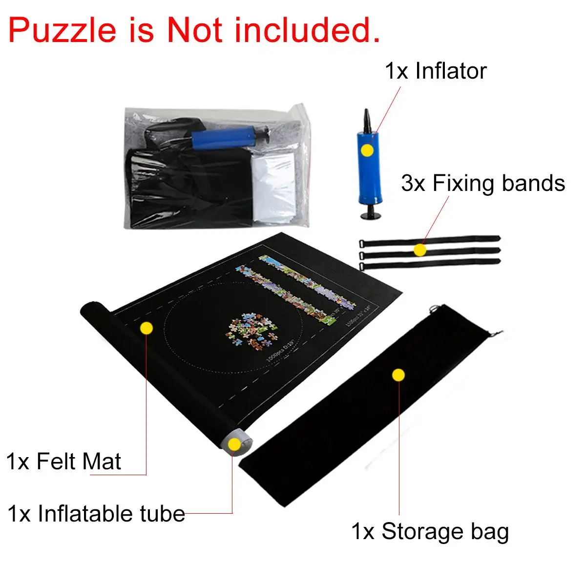 Посылка включает в себя:1x войлочный коврик1x сумка для хранения1x Надувное устройство3x крепежные ленты1 надувная трубка(Головоломка не входит в комплект.)