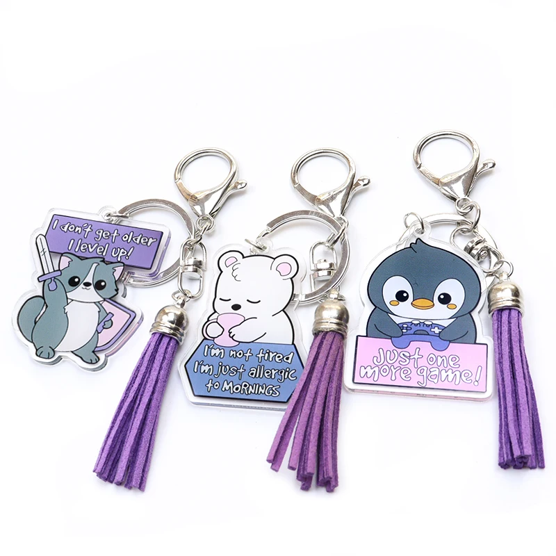 Акриловая подвеска в виде животных, крысы, пингвина, енота, искусственная кожа, брелок, милый брелок, кольцо для ключей, двусторонняя бижутерия, аксессуары