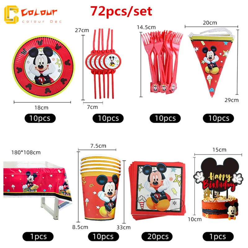 1 комплект; Вечерние платья с Микки Маусом для маленьких детей; Детские праздничные вечерние одноразовые принадлежности для дня рождения; Вечерние принадлежности с Микки Маусом для торта; Для первого дня рождения; Для мальчиков