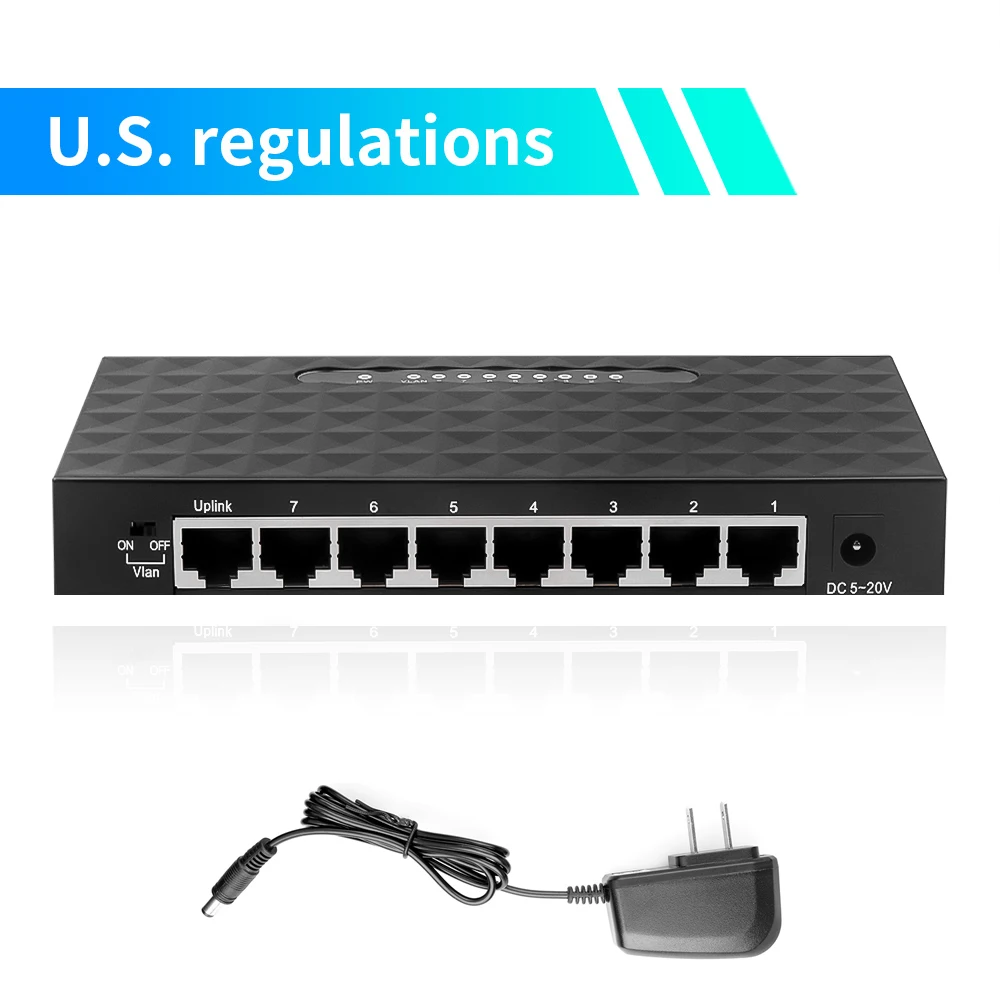 Kebidu RJ45 8 портов 100 Мбитс гигабитный сплиттер Ethernet сетевой коммутатор ethernet Lan концентратор высокая производительность Ethernet европейская вилкаСША