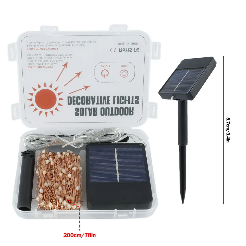 【 2021 Модернизированный Солнечный струнный светильник s】этот супер яркий 22 м Солнечный Сказочный светильник оснащен 200 модернизированными светодиодный бусинами с устойчивым углом обзора 360 градусов они освещают в каждом направлении и модернизированной солнечной панелью (Размер: 8,7x6,1x1,6 см) с лучшая эффективность преобразования. Идеально подходит для украшения вашего сада, патио, ворот, двора, свадьбы, вечерние и т. Д. 【 Энергосбережение и экологичность 】этот Рождественский струнный светильник работает свободно от солнца, не требует дополнительных затрат на электроэнергию и не требует замены аккумулятора, поместите солнечную панель на открытое место с прямым солнечным светильник, он может светильник 8-10 часов после 8 часов полной зарядки. IP65 IP65 водонепроницаемый 】 гирлянды и солнечные панели являются водонепроницаемыми IP65, подходят для наружного использования в помещении, даже в дождливый день. Не беспокойтесь о электрической утечке из-за изоляции медной проводки. 【Легко использовать 】светильник для украшения солнечных струн имеет 22 м гибкий провод струнный светильник s, легкая установка, легко сгибается и образуется вокруг растений, знаков, мебели и почти всего остального, в темноте, провод тускнеет, оставляя только яркий светильник s. [Широко используется] Эти солнечные гирлянды являются отличным декоративным аксессуаром для освещения внутренних и наружных помещений, таких как ваши сады, патио, забор, ворота, дворы, свадебные, вечерние, рождественские деревья и т. д.