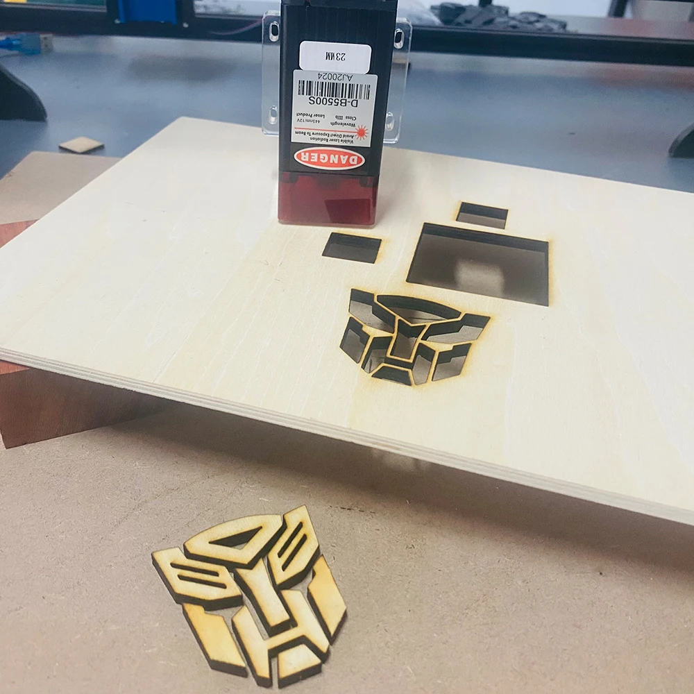 Фанера 3 мм резка: 450 мм/мин, S1000 , 1 Pass