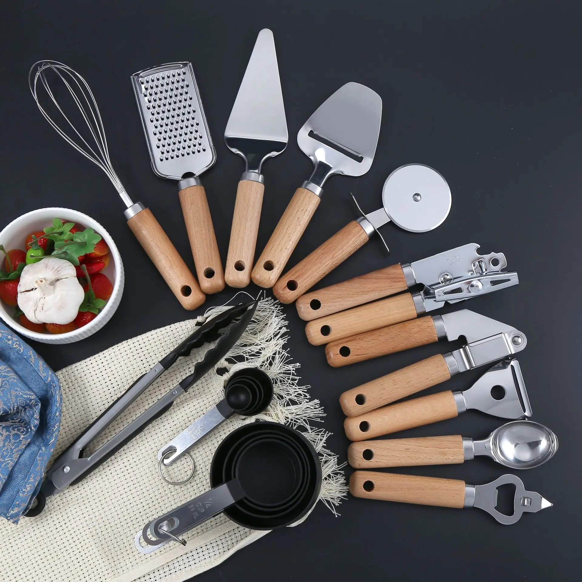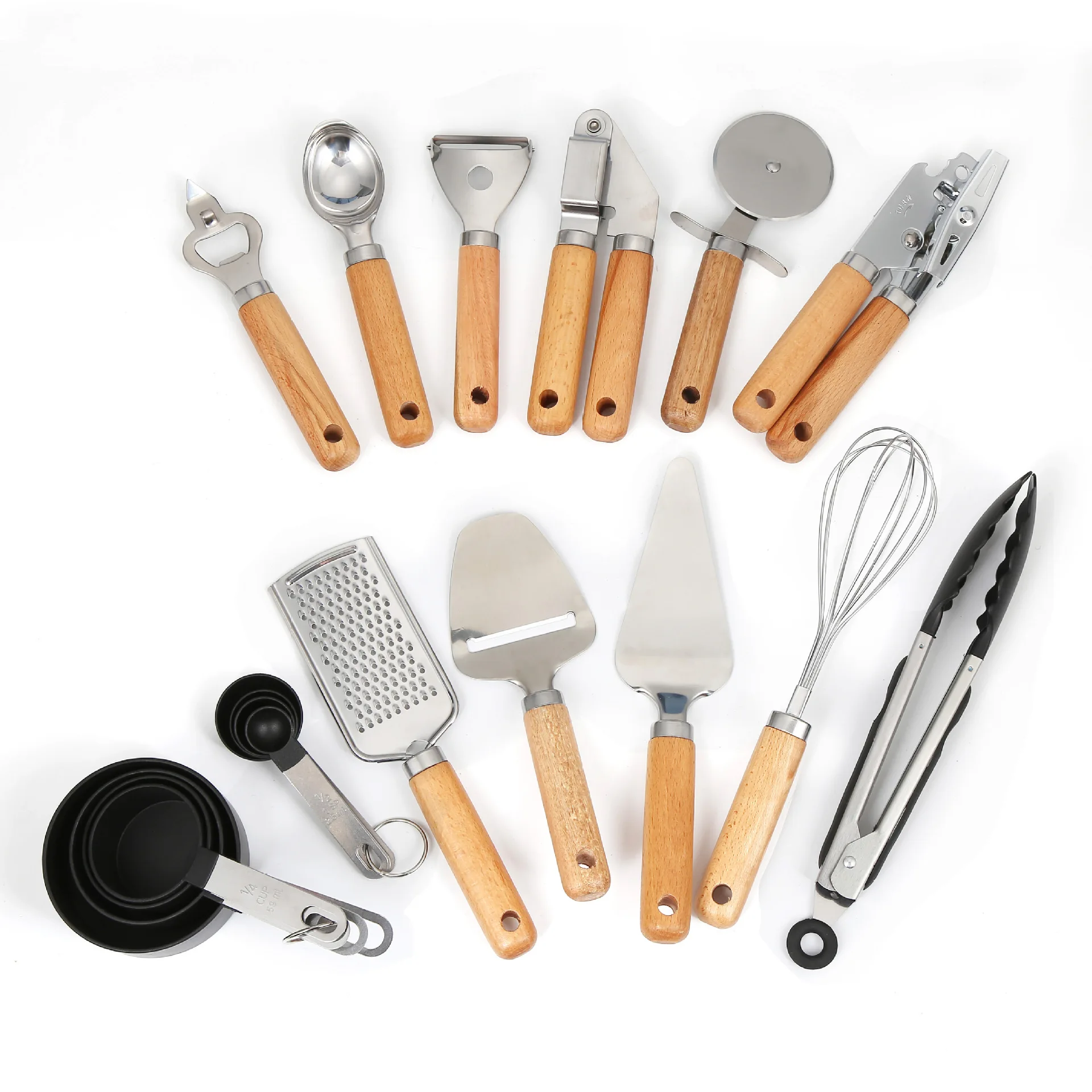 Из нержавеющей стали с деревянной ручкой кухонные инструменты, штопор, шарикоподъемник, колесо для торта, тыква, терка, нож для сыра, консервный нож, венчик