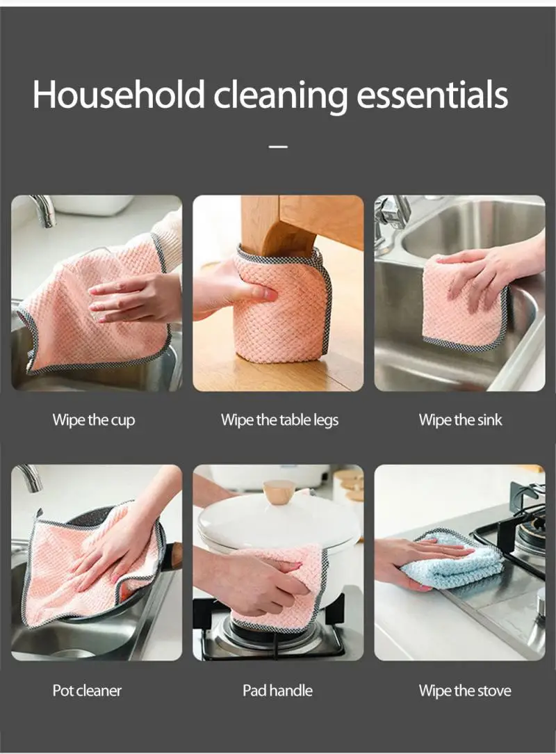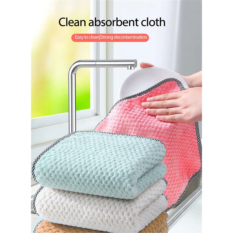 Антипригарное домашнее полотенце для уборки, полотенце для очистки от ворса, коралловый флис, двухсторонняя вешалка для пальто, кухонный инструмент, нежирная ткань для посуды, Прямая поставка.
