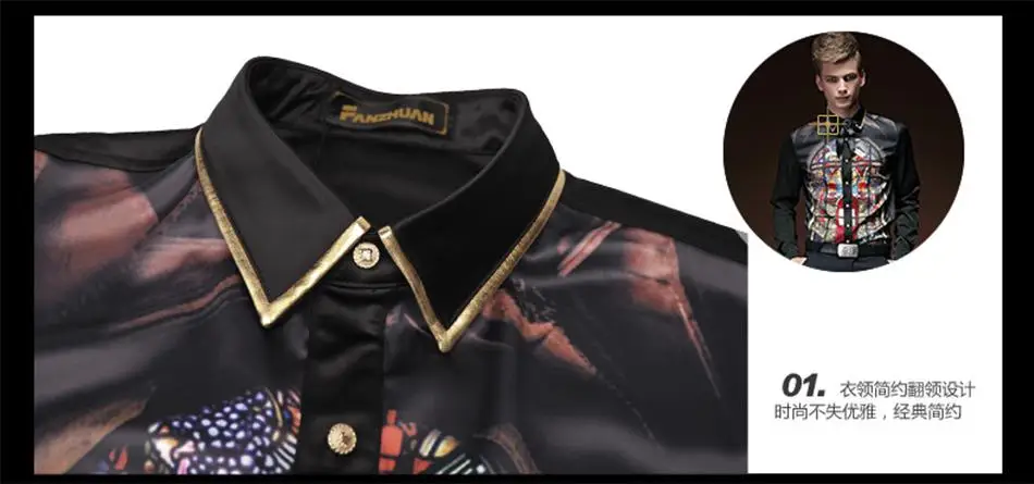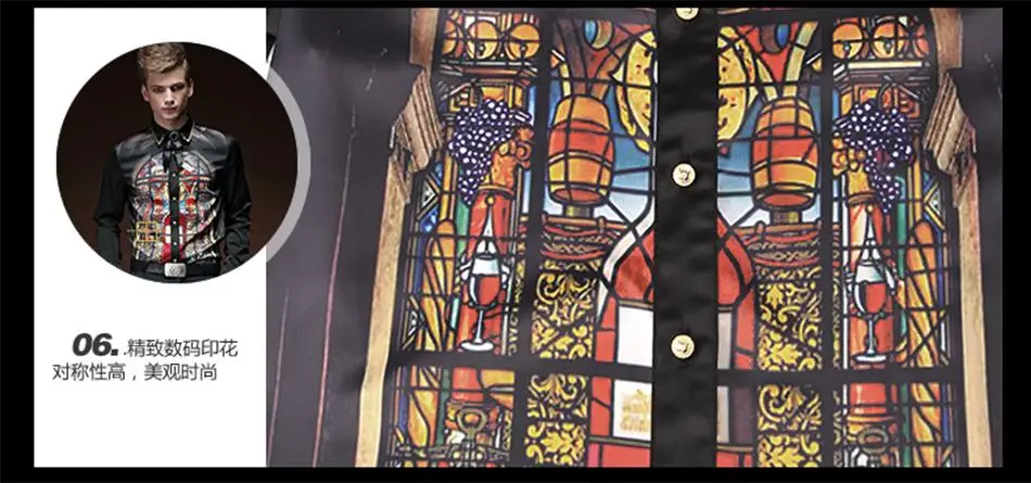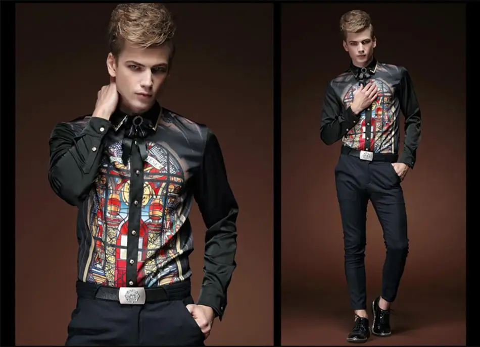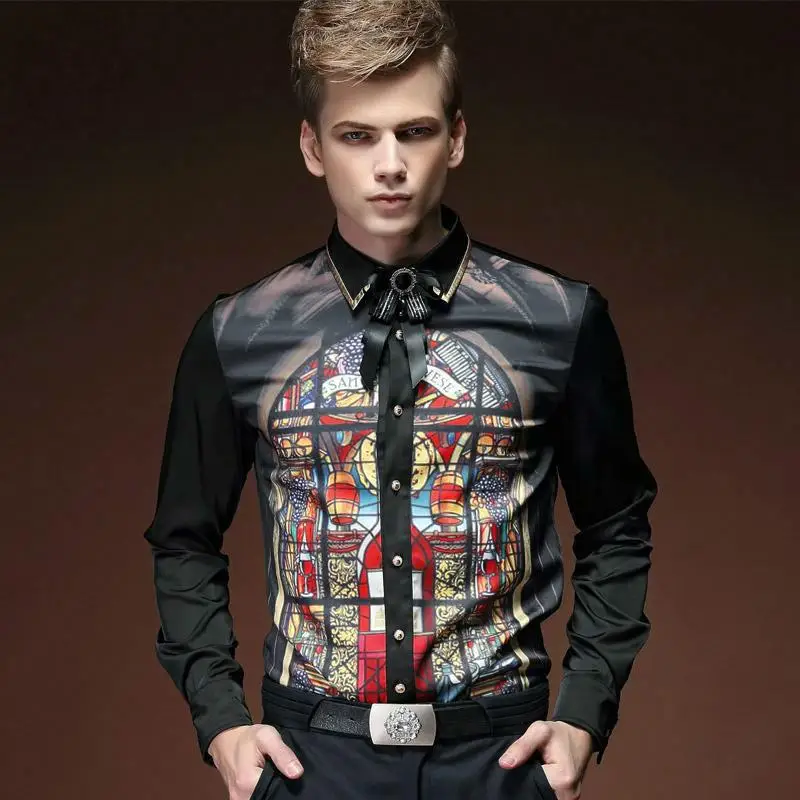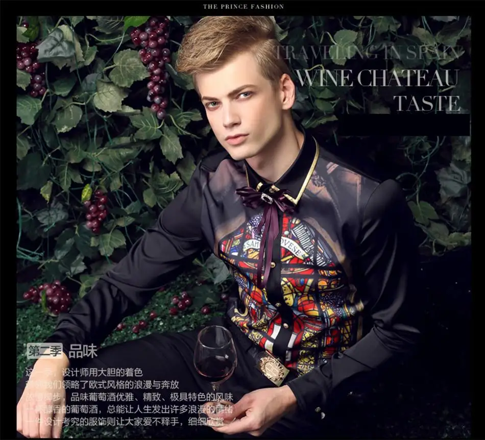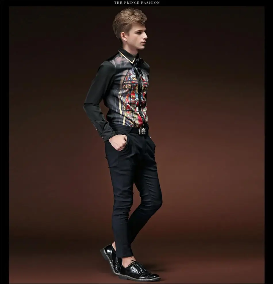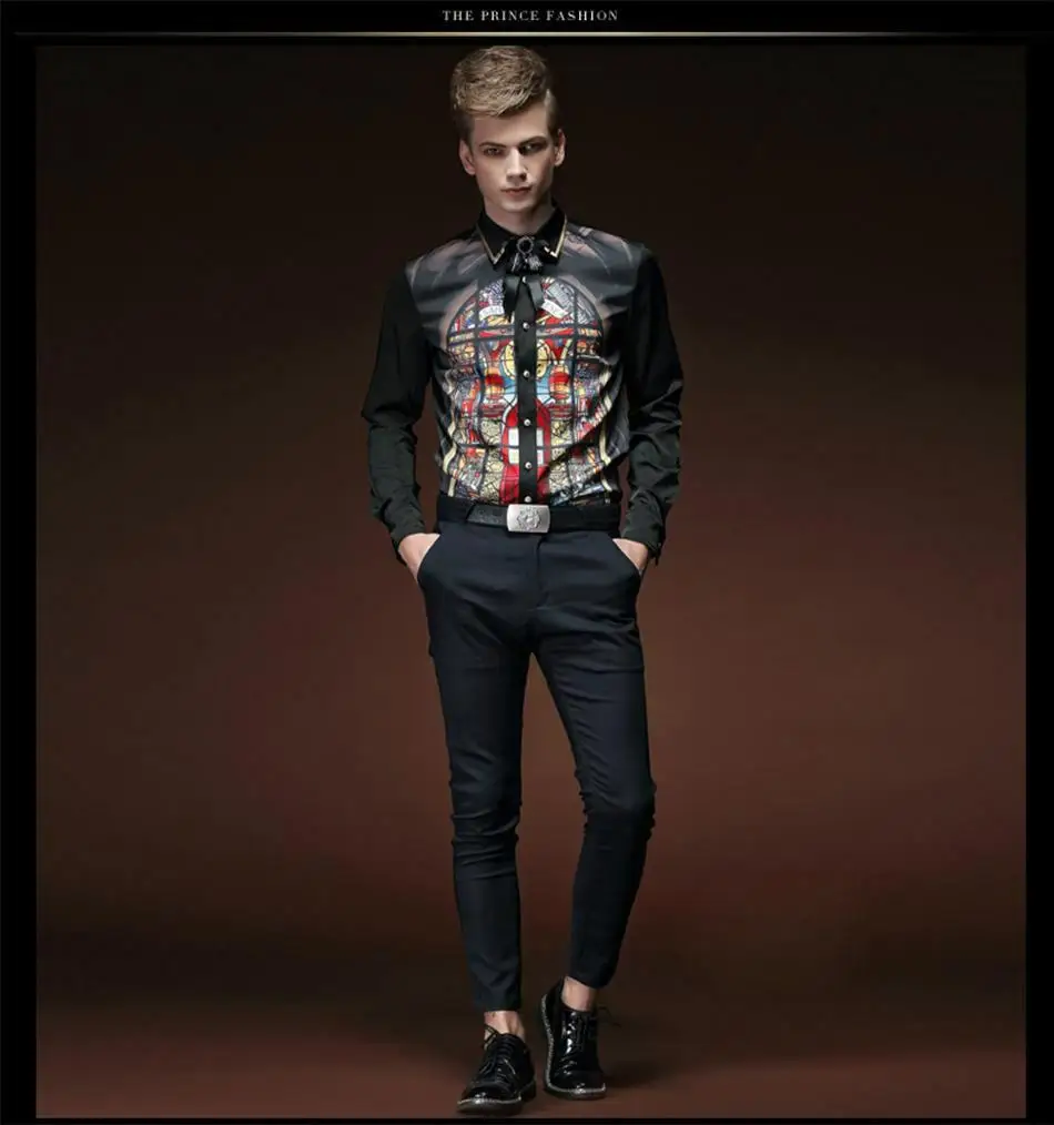 Дизайнерская брендовая Облегающая рубашка в европейском и американском дворцовом стиле с длинными рукавами и рисунком для мужчин, осень