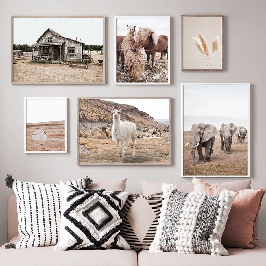 Картина на холсте, лошадь, альпака, слон, лама, пастбище, плакаты и принты, печатная жизнь, настенное искусство, украшение для гостиной, дома