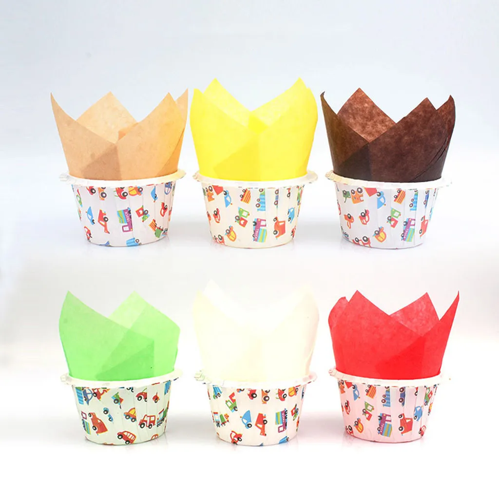 Кекс вкладыши чашки бумаги тюльпан выпечки обертка чехол торт Маффин чашки коробка