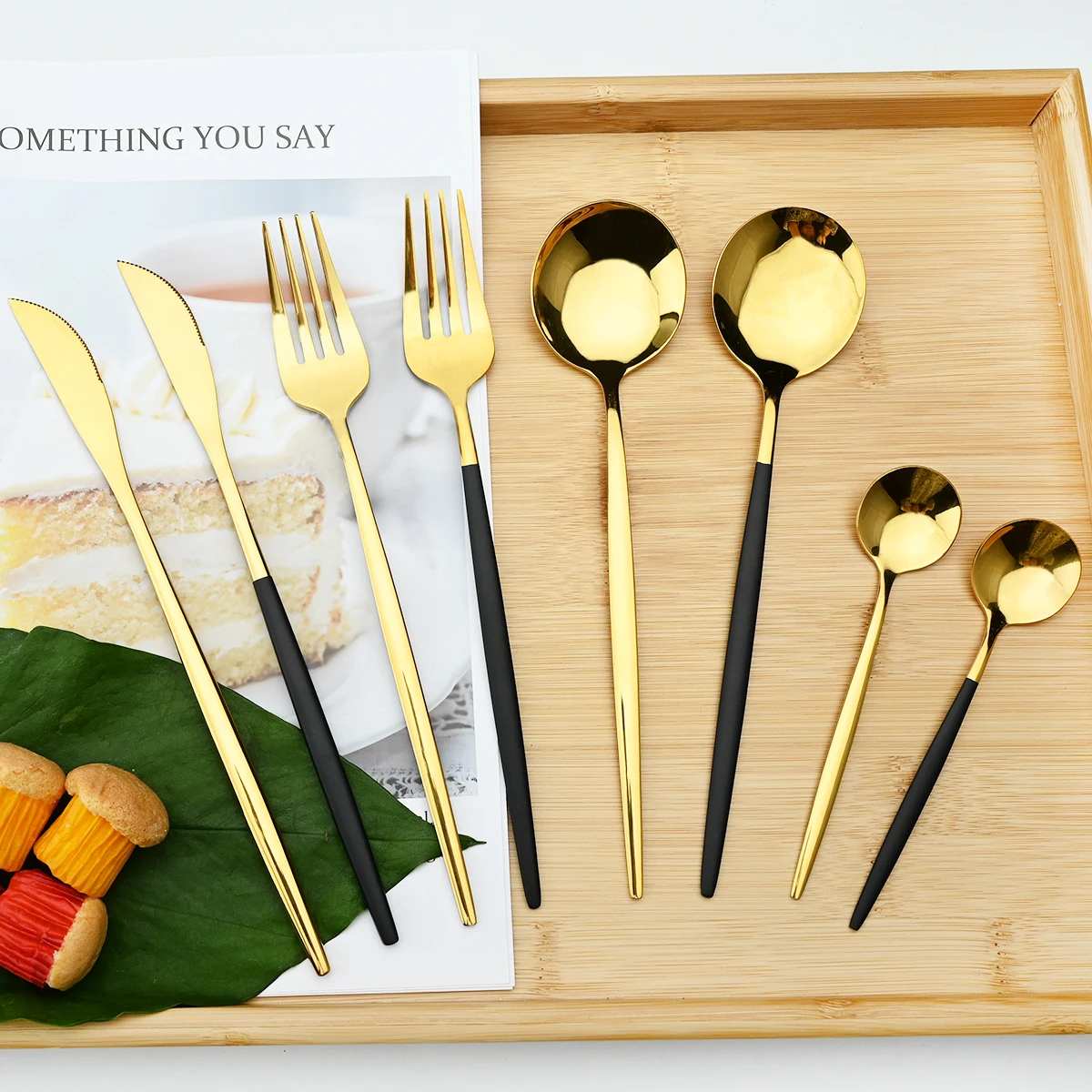 Набор столовых приборов из нержавеющей стали черного и золотого цве...