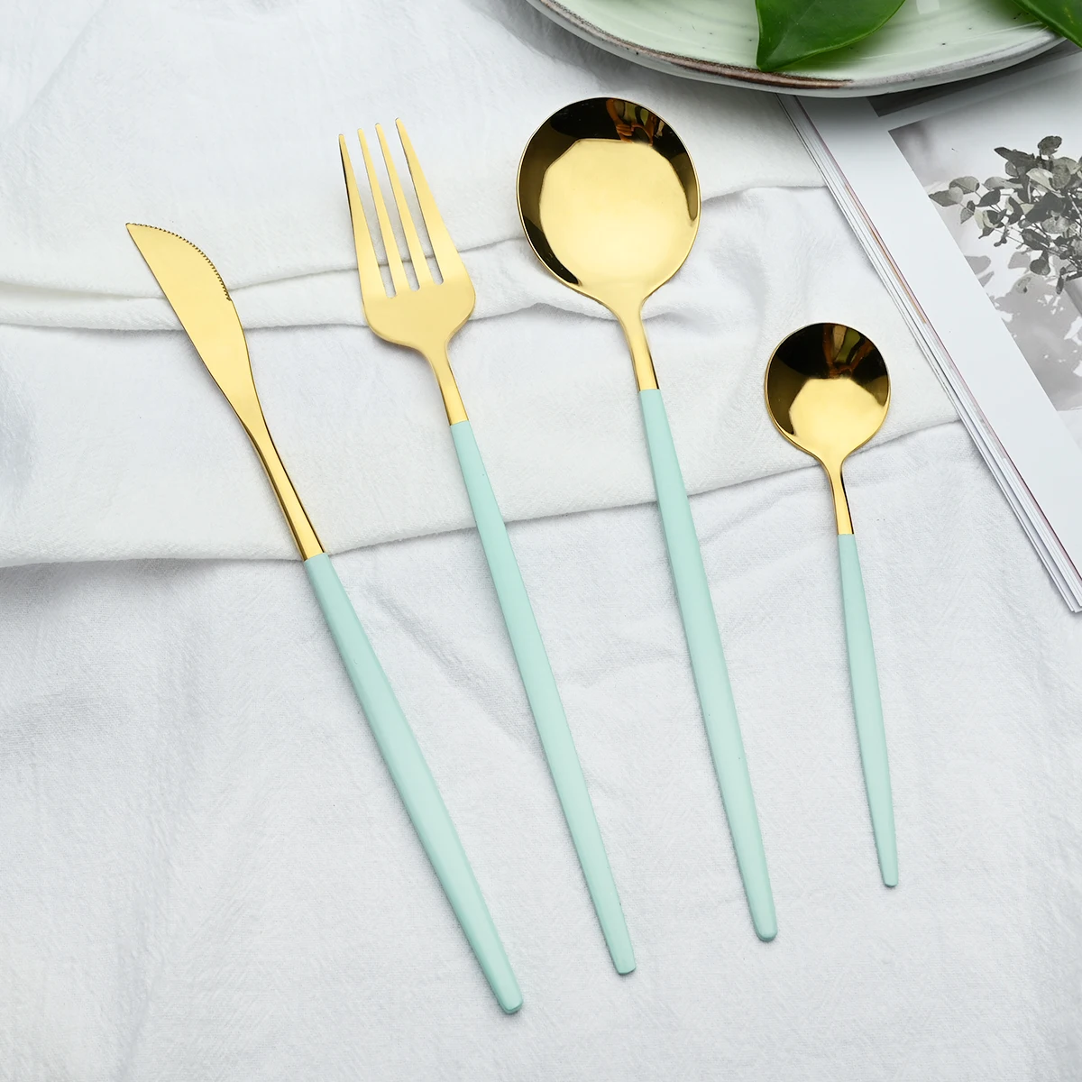 Набор столовых приборов из нержавеющей стали зеленого золота, 30 шт.