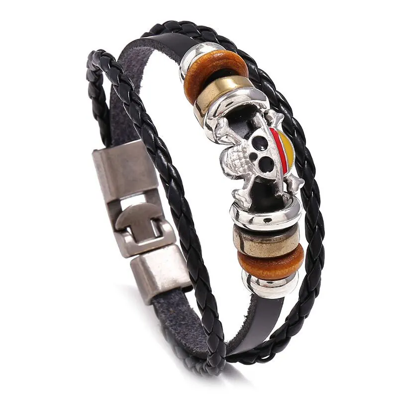 Японский кожаный браслет Luffy с пиратским логотипом аниме цельный ...