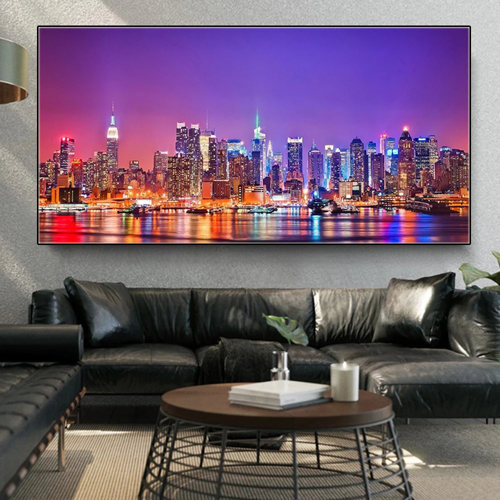 Современный пейзаж плакаты ночной вид Нью-Йорк холст Художественная живопись принты Куадрос Настенная картина гостиная домашний декор