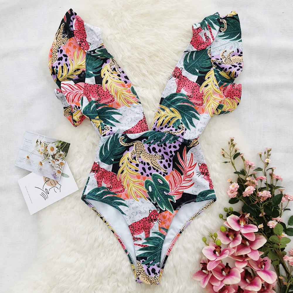 2022 сексуальный слитный купальник с принтом, купальник с оборками,...