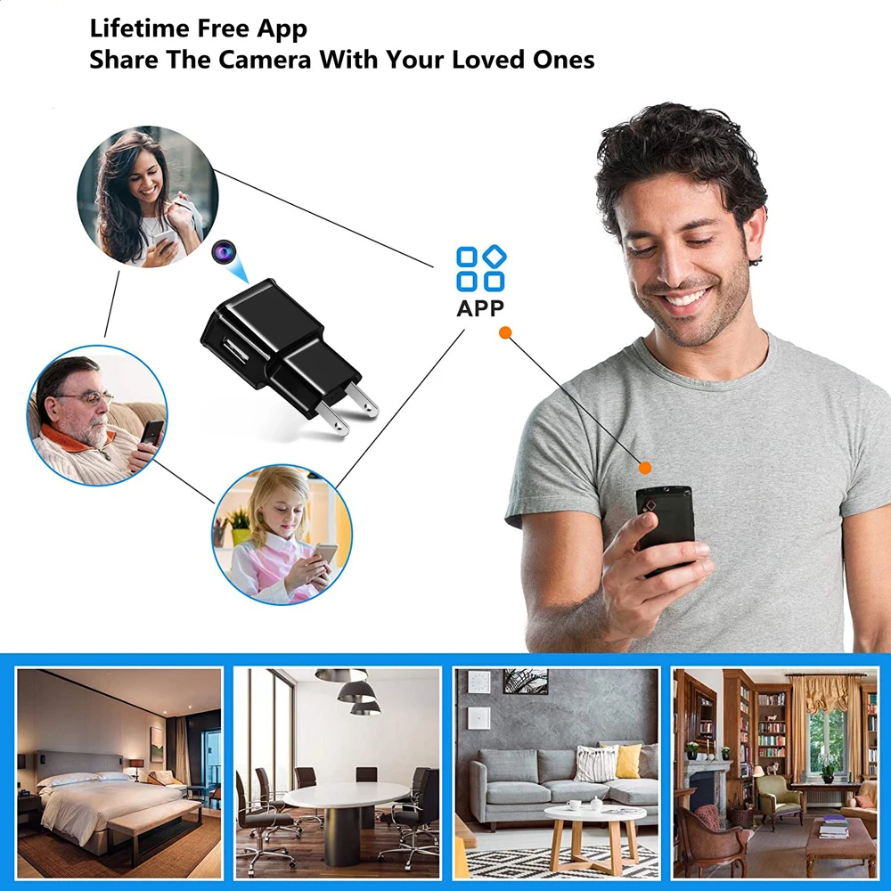 Эта камера безопасности также является зарядным устройством USB, она может записывать видео Full Hd 1080p во время зарядки устройства, не будучи замеченным, следить за ребенком дома, в офисе или автомобиле камеры безопасности, домашних животных, няня, воры или сотрудники.