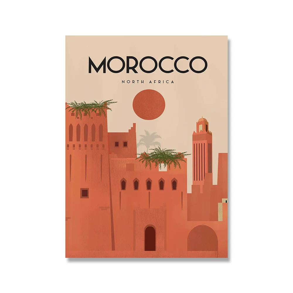 Всемирно известный постер путешествий по городу, марокканская Барсе...