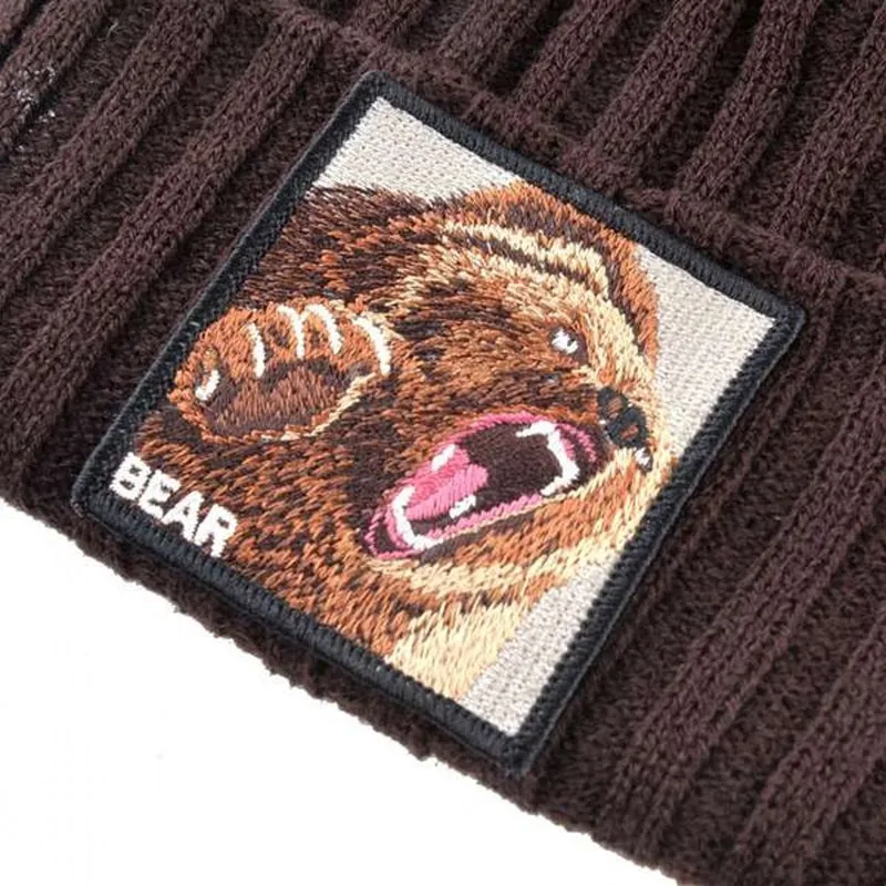 Новинка 2021, модная зимняя вязаная шапка с вышивкой в виде медведя для мужчин и женщин, вязаные шапочки на осень и зиму, шапки, шапка, шапка, унисекс