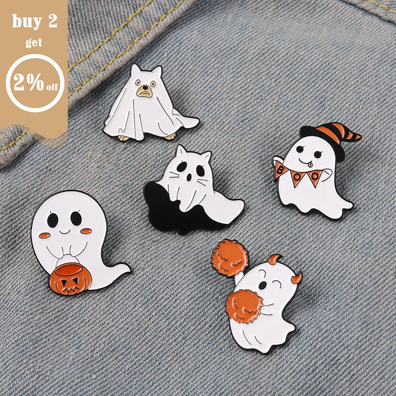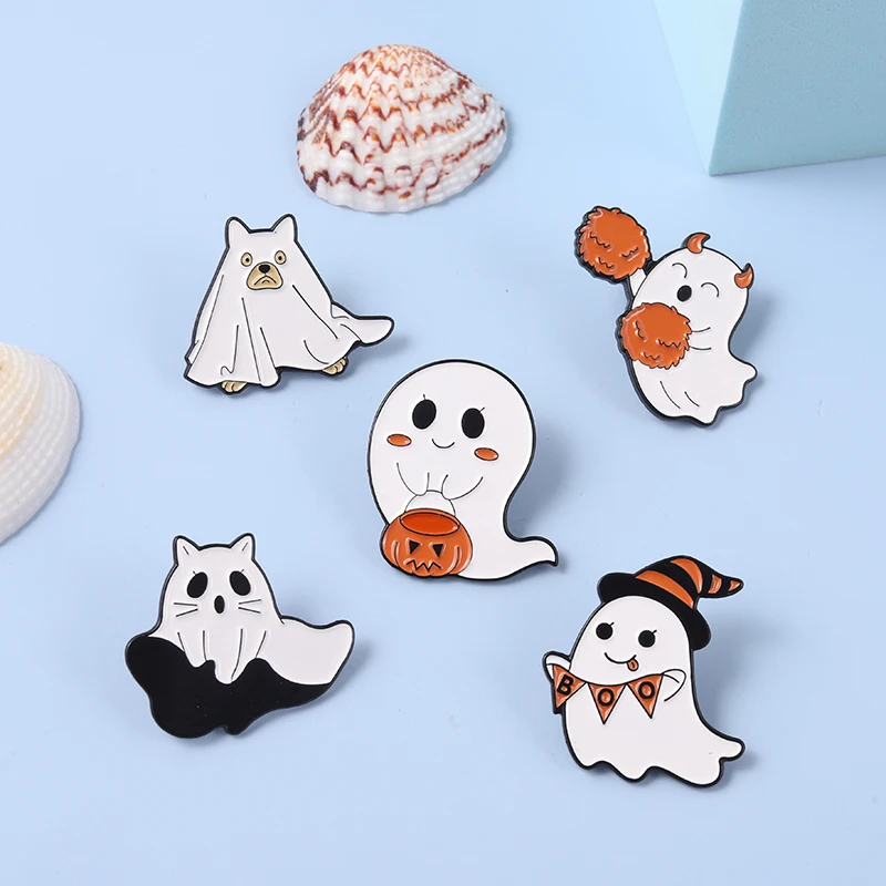 Счастливого Хэллоуина! Эмалированные булавки с призраками, страшный...